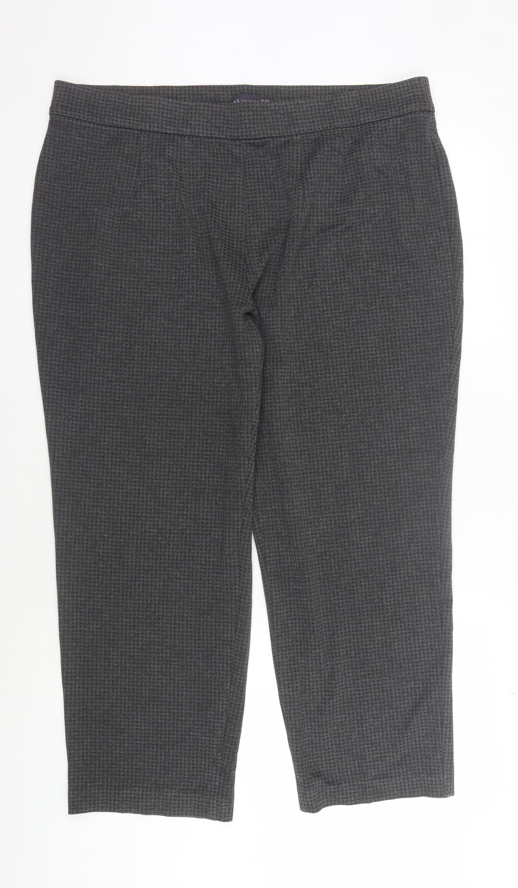 Explore classic comfort and style with these Marks and Spencer women's trousers. Tailored for the modern woman, these trousers are crafted from a luxurious blend of viscose, polyester, and elastane, ensuring a perfect fit with a hint of stretch. The elegant grey shade is versatile and easy to pair with any top in your wardrobe, while the straight leg style offers a timeless silhouette. Ideal for everyday wear, these trousers promise to complete your ensemble with flair.These trousers, sized at UK 20, are perfect for women seeking a regular fit, providing comfort without compromising on style. The machine washable fabric promises easy maintenance, making it an ideal choice for busy lifestyles. Although pre-owned, these trousers are in excellent condition with no visible wear or damage, making them an exceptional addition to any wardrobe.Look effortlessly chic at work or on casual outings with these versatile trousers. A staple piece for your collection, their classic design ensures they remain a wardrobe favourite for years to come.