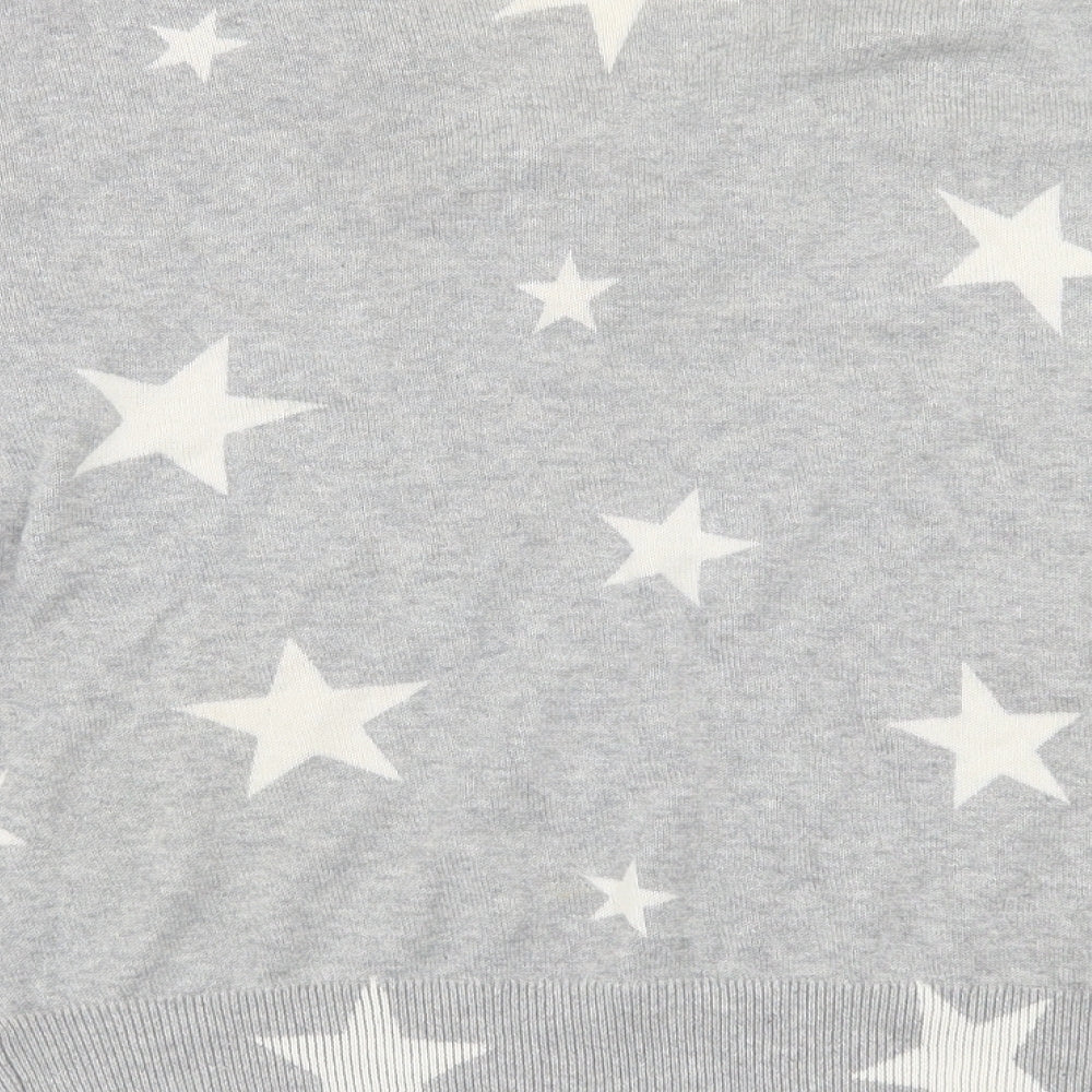 Womens Grey V-Neck Geometric Cotton Pullover Jumper Size S