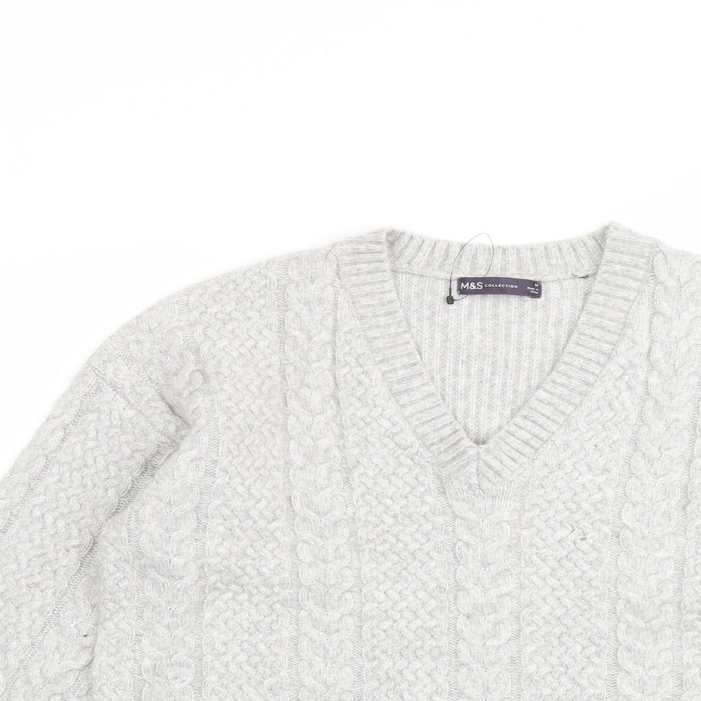 Marks and Spencer Women's Grey Floral Knit Pullover Jumper M