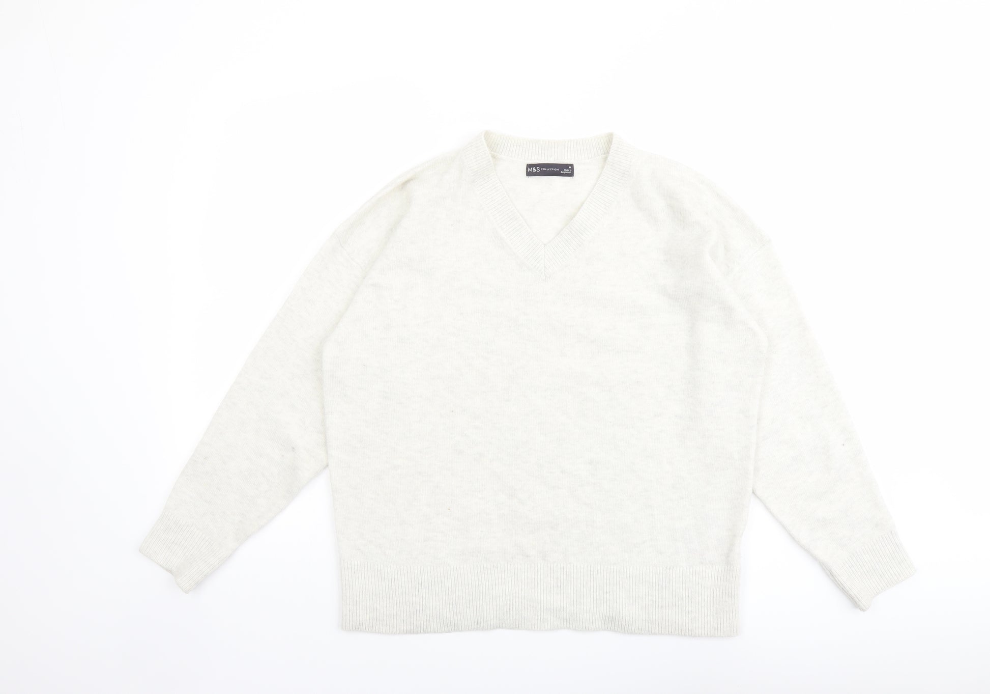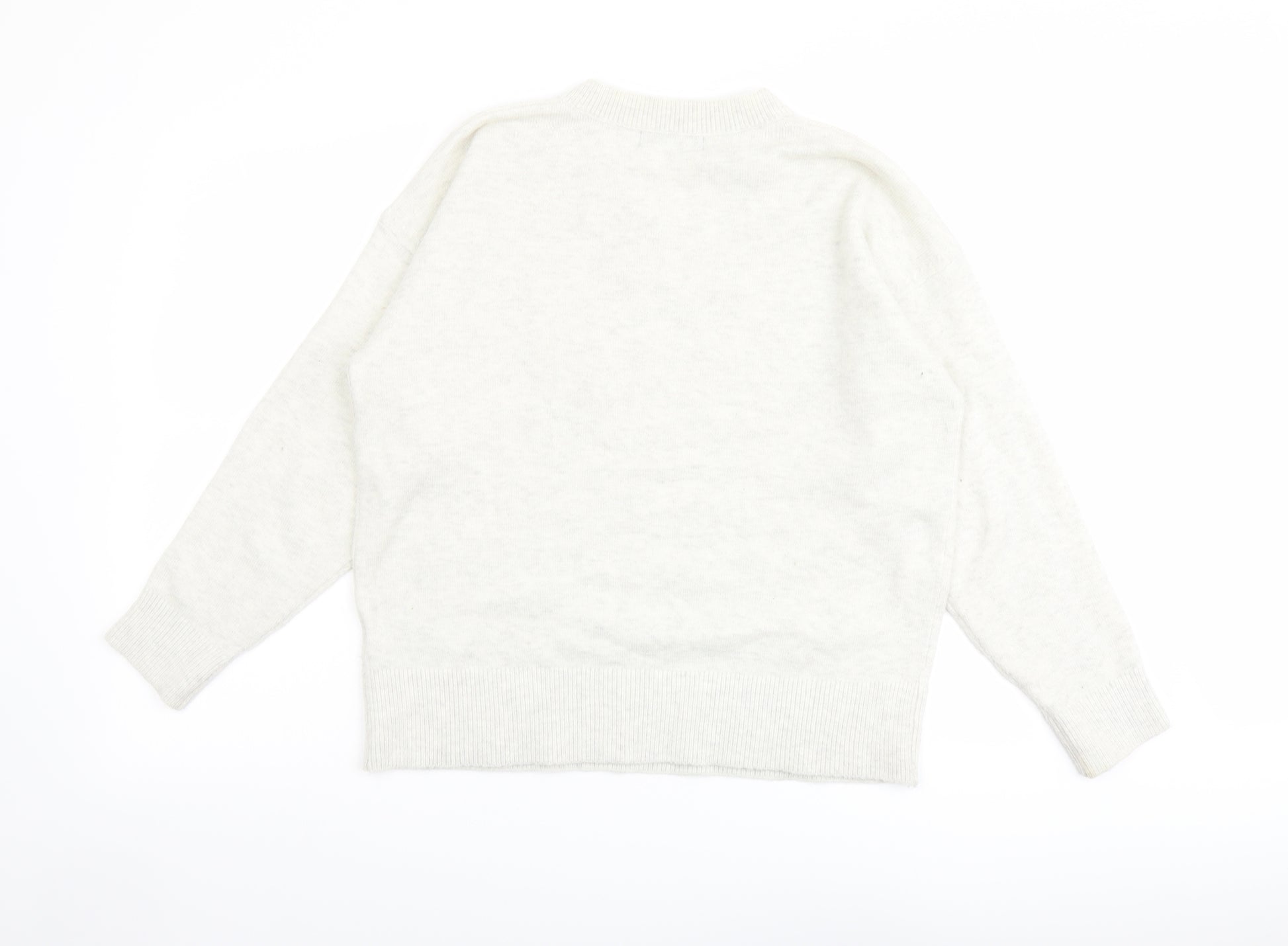 Womens Grey V-Neck Polyester Pullover Jumper Size M