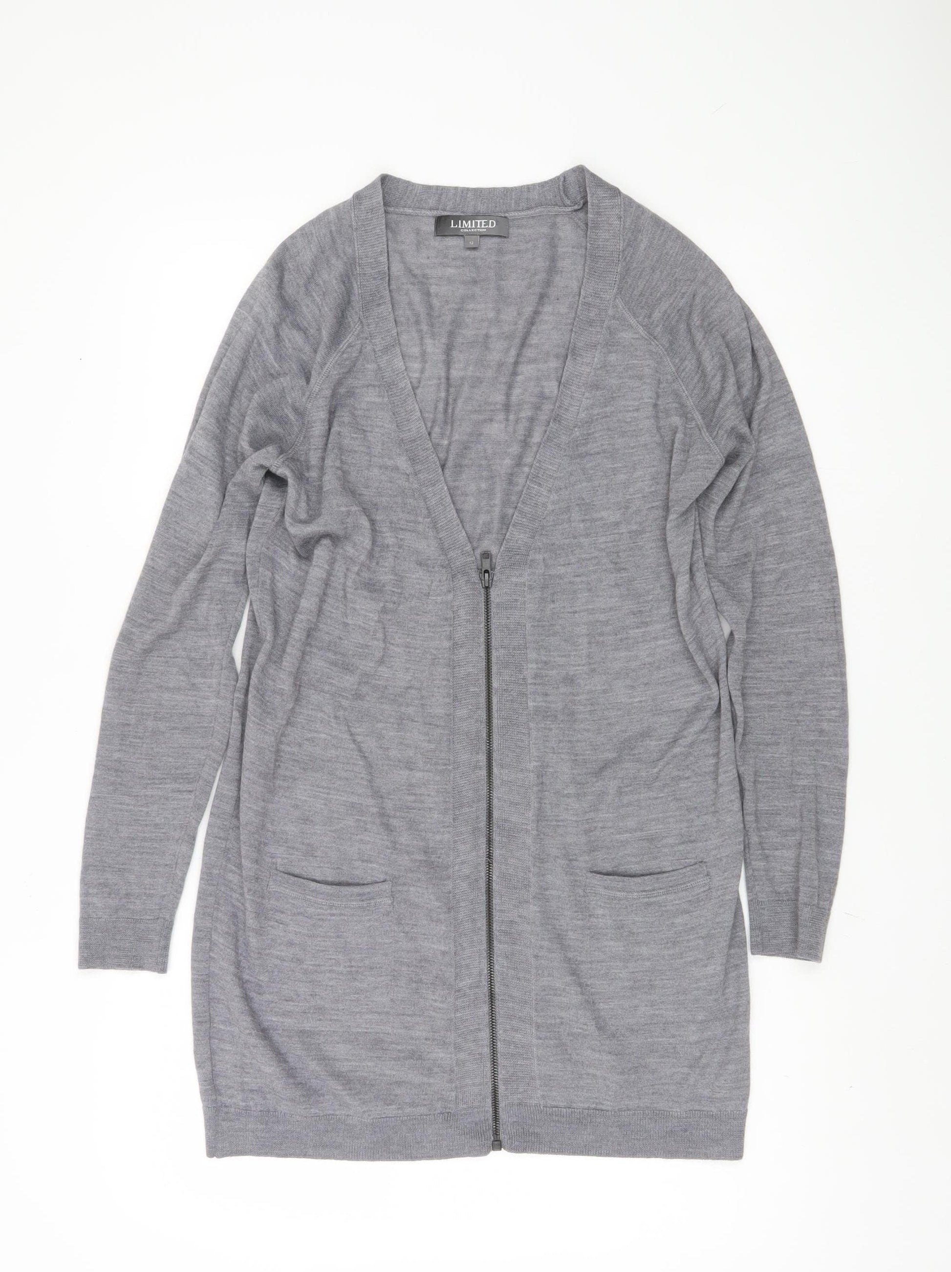Discover the elegance and comfort of this Marks and Spencer Women's Grey Zip Cardigan, perfect for enhancing your everyday wardrobe. In a versatile grey shade, this cardigan is crafted for the modern woman seeking both style and warmth. Made from a high-quality cashmere blend, it ensures a soft and luxurious feel against the skin while maintaining durability through consistent wear. The simplistic design includes a convenient full zip, ideal for layering and transitioning through the seasons, particularly autumn and winter. The cardigan's regular fit and long raglan sleeves provide a relaxed yet structured silhouette, adding a touch of sophistication to casual ensembles. As part of the esteemed Limited Collection, it carries the assurance of M&S's renowned craftsmanship. Designed for versatility, this knit cardigan pairs effortlessly with jeans, skirts, or dresses, making it suitable for various occasions from casual outings to cozy days at home. Accentuated by its subtle pattern-free look, it is an easy match for patterned or plain outfits, while its simplicity ensures it never goes out of style. Practical and stylish, this cardigan is an investment in comfort and elegance, ready to complement the wardrobe of any discerning woman. Its excellent pre-loved condition means you can enjoy this piece for years to come without compromise. Ideal for a quick coffee date or an evening stroll, this cardigan assures both style and practicality, making it a must-have addition to your collection.