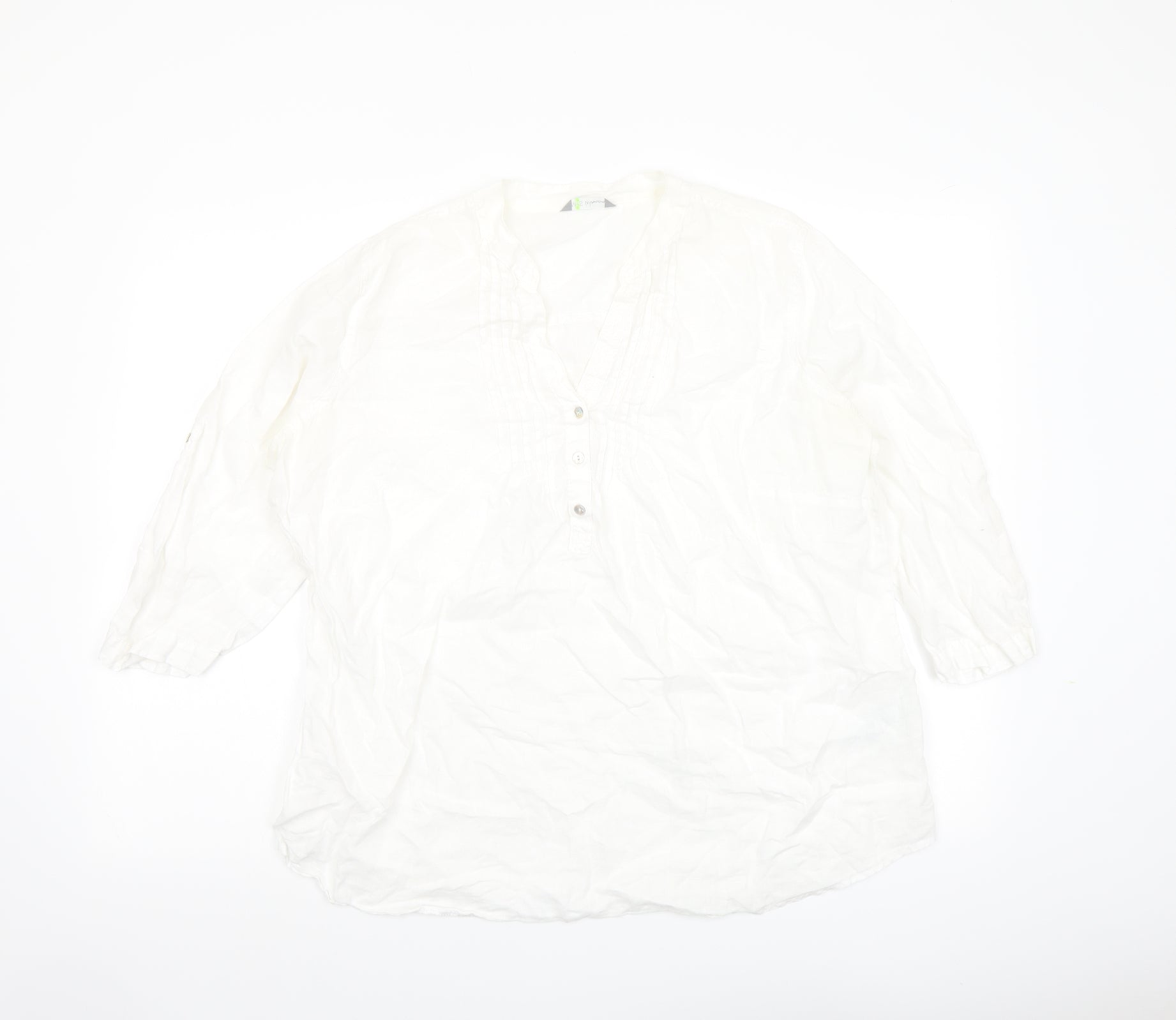 Womens Ivory Linen Basic Blouse Size 16 V-Neck