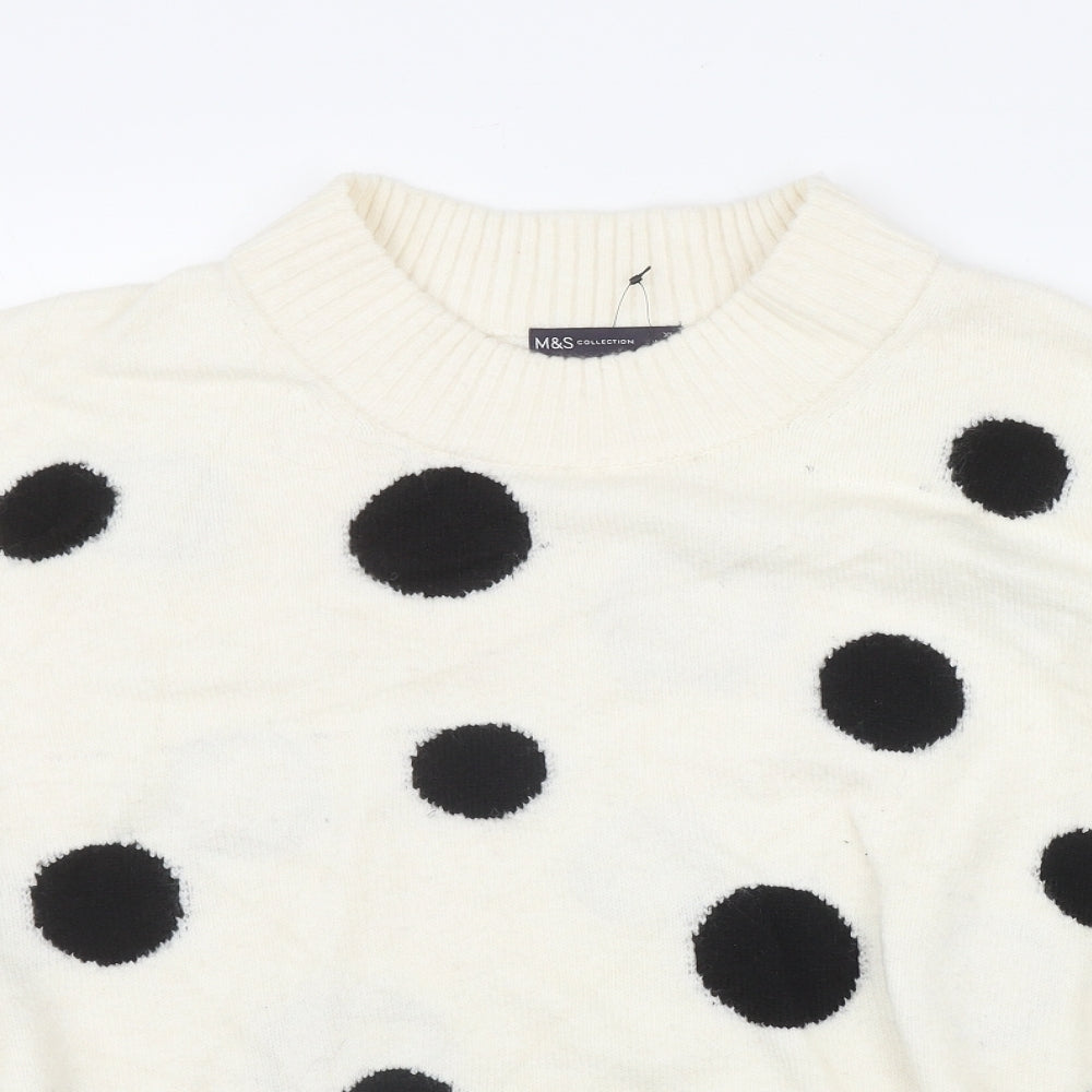 Womens Ivory Mock Neck Polka Dot Acrylic Pullover Jumper Size XL