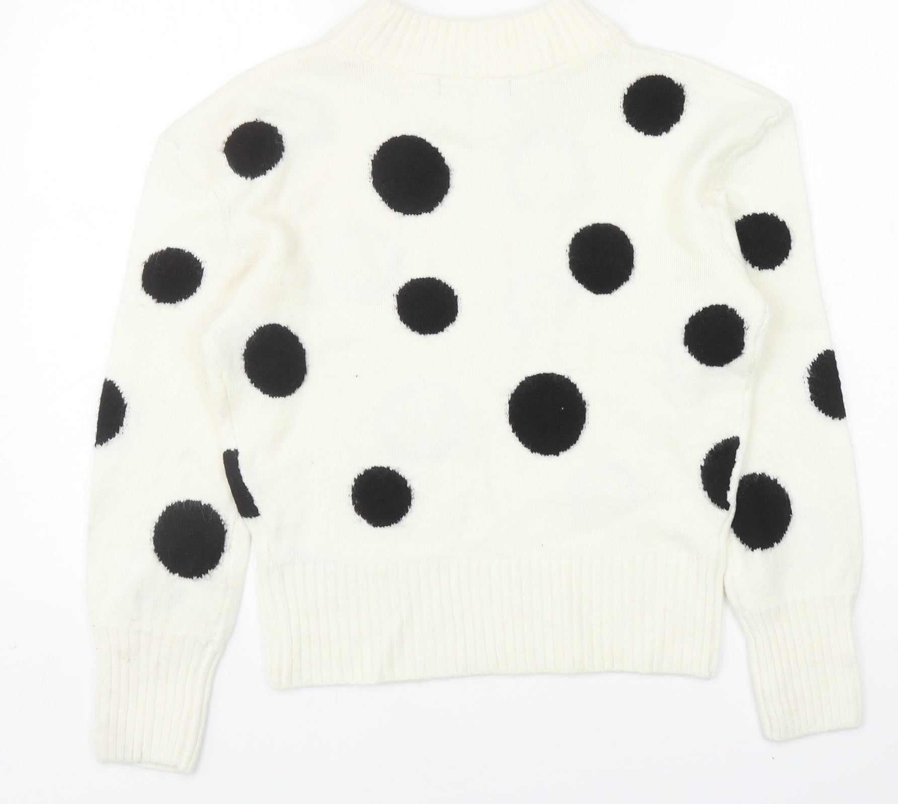 Womens Ivory Mock Neck Polka Dot Acrylic Pullover Jumper Size XS