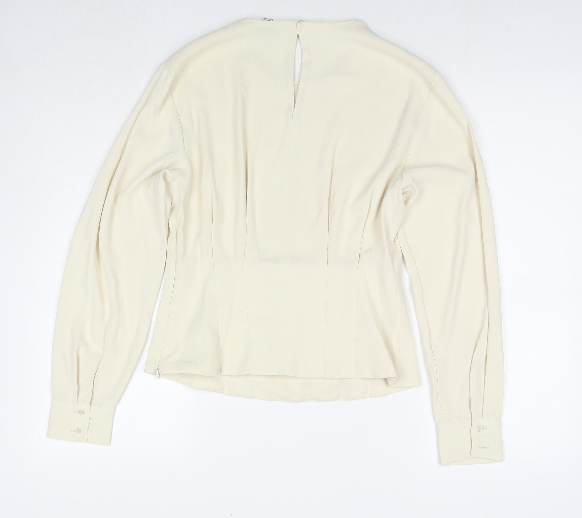 Womens Ivory Polyester Basic Blouse Size 10 Round Neck