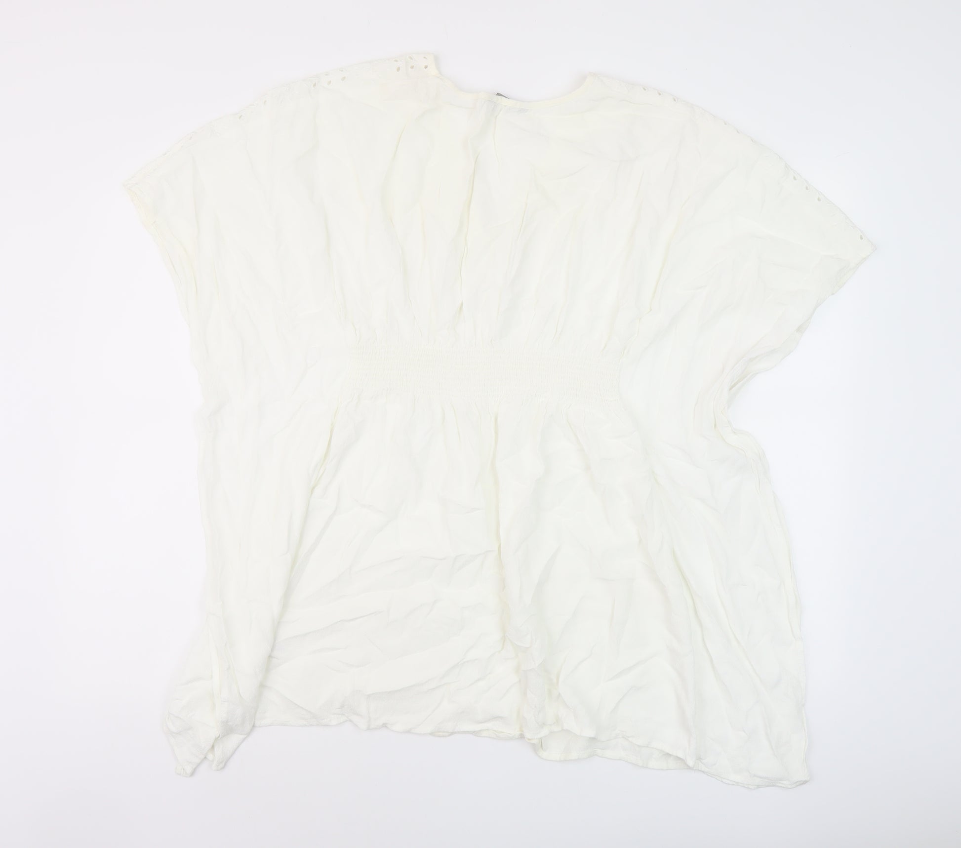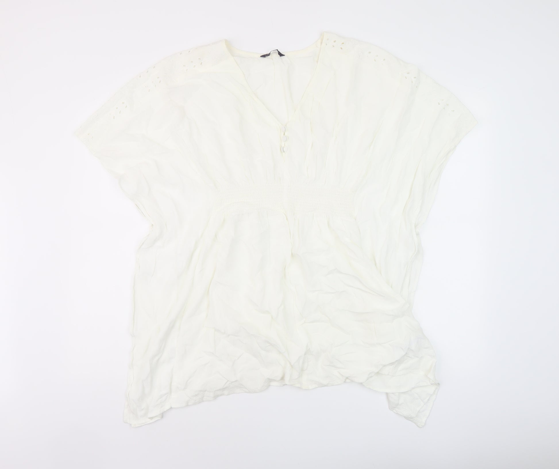 Womens Ivory Polyester Basic Blouse Size M V-Neck