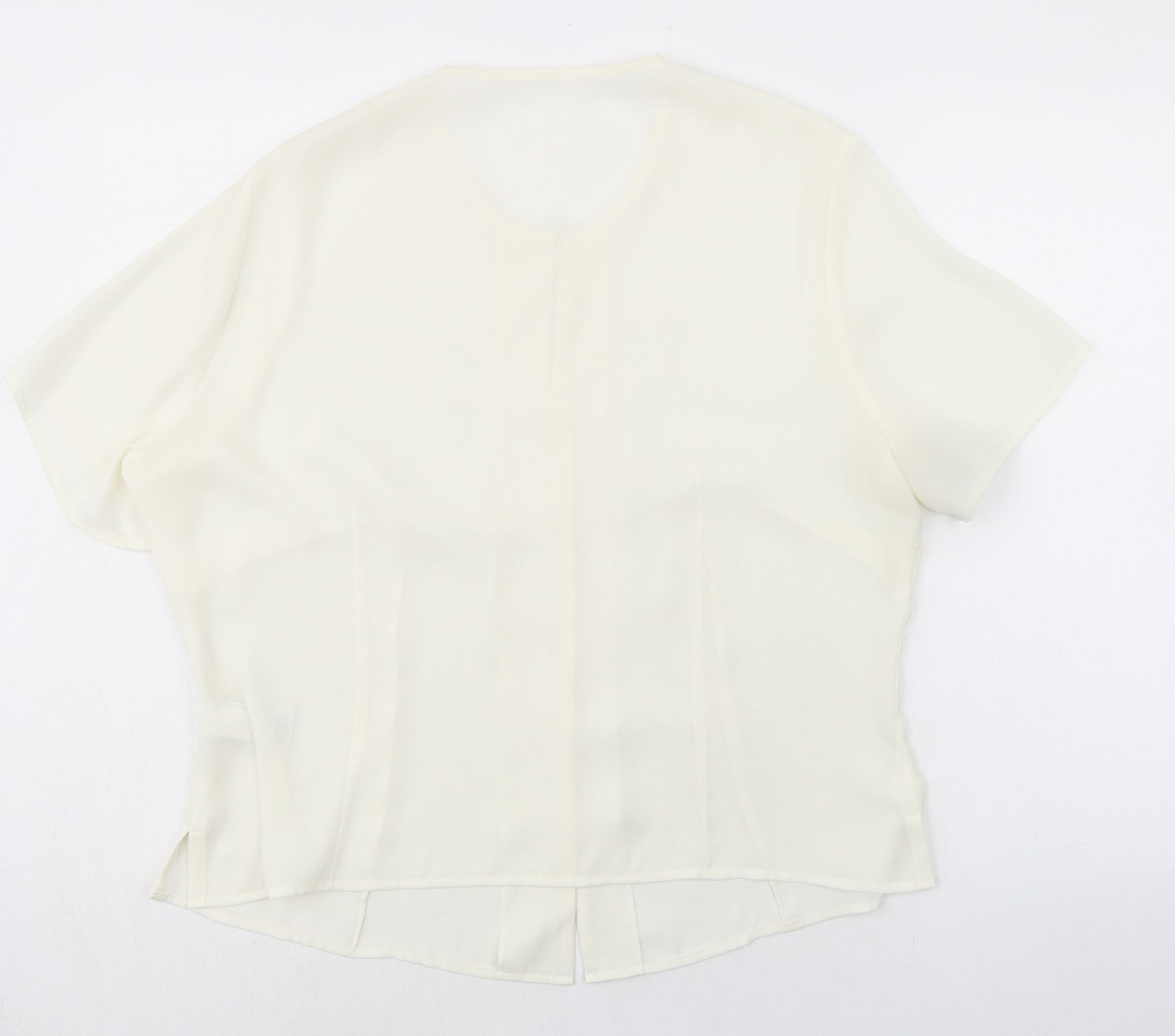 Womens Ivory Polyester Basic Button-Up Size 18 Round Neck