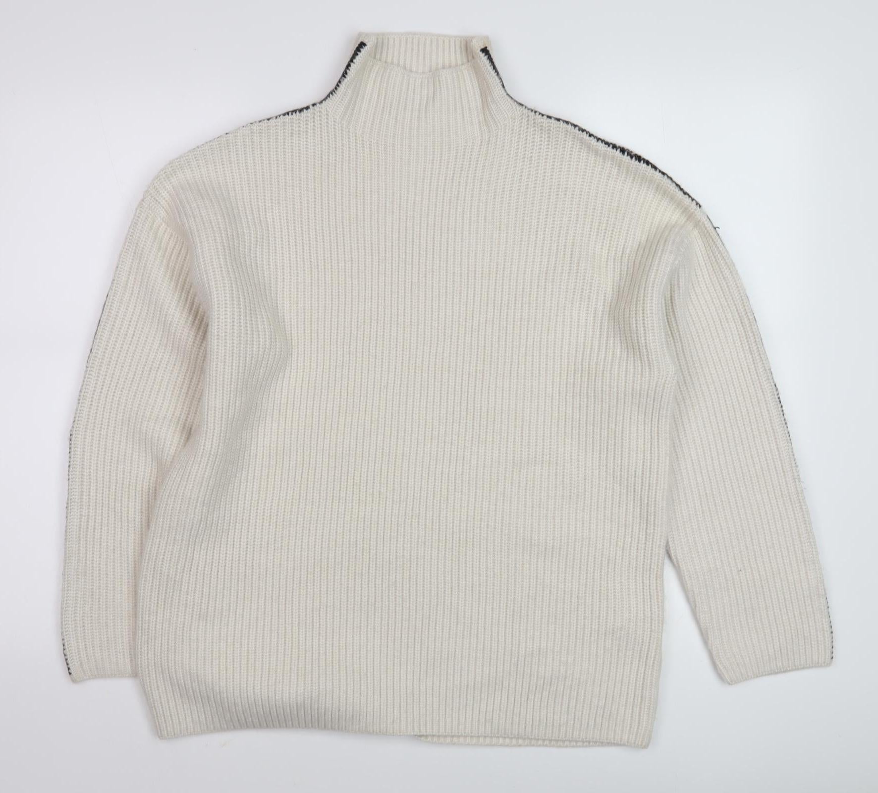 Discover timeless elegance with this ivory pullover jumper from Marks and Spencer, perfect for any fashion-forward woman's wardrobe. Crafted from a luxurious blend of wool, polyester, acrylic, and polyamide, this jumper offers both comfort and style. The high neck design and long sleeves provide warmth and sophistication, making it an ideal choice for seasonal transitions. The classic knit fabric ensures a cozy fit while maintaining a chic aesthetic. Easy to maintain, this machine washable jumper is tailored for women appreciating quality and style. Despite being in excellent condition, note the slight bobbling, hinting at its previous, gentle wear. Available in size M, this pullover seamlessly pairs with both casual and formal outfits, promising versatility for any occasion. Enhance your collection with this staple piece from Marks and Spencer, offering lasting comfort and understated elegance.