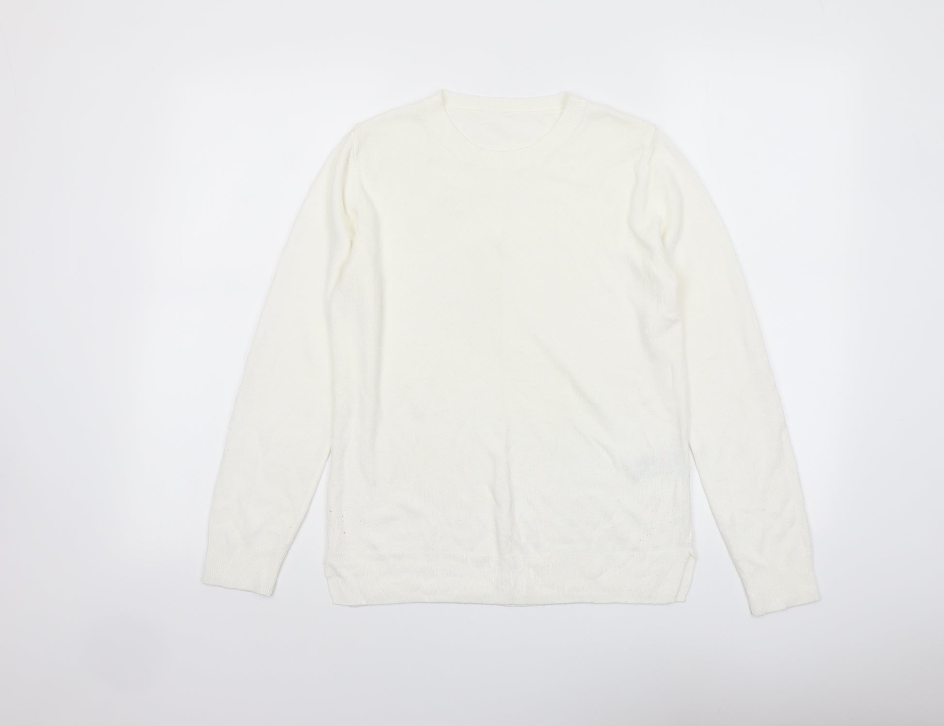 Womens Ivory Round Neck Acrylic Pullover Jumper Size 10
