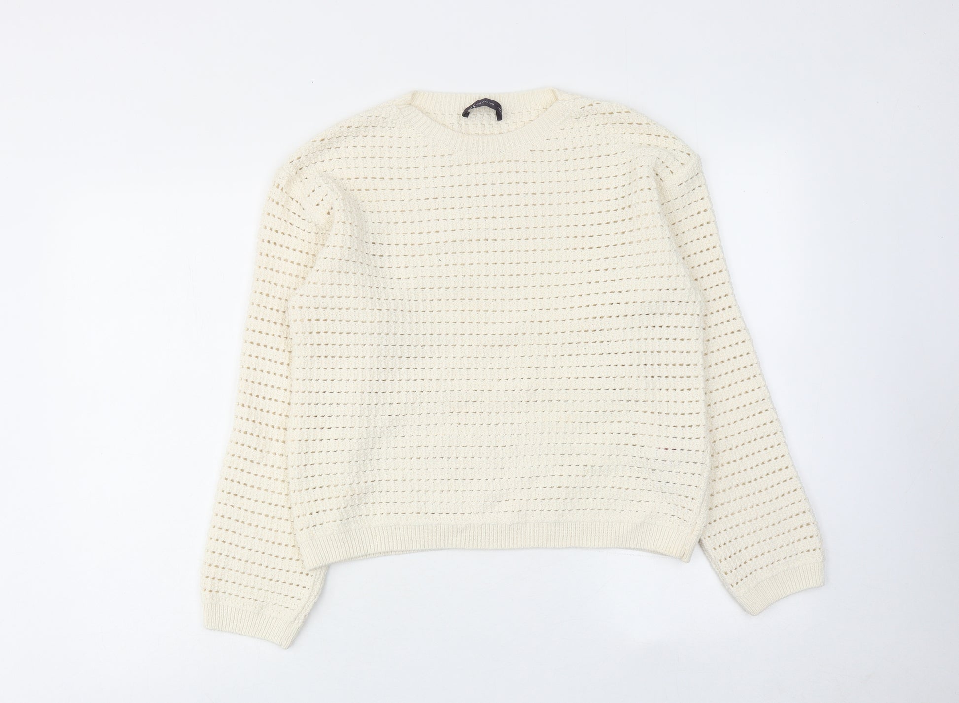 Womens Ivory Round Neck Cotton Pullover Jumper Size S
