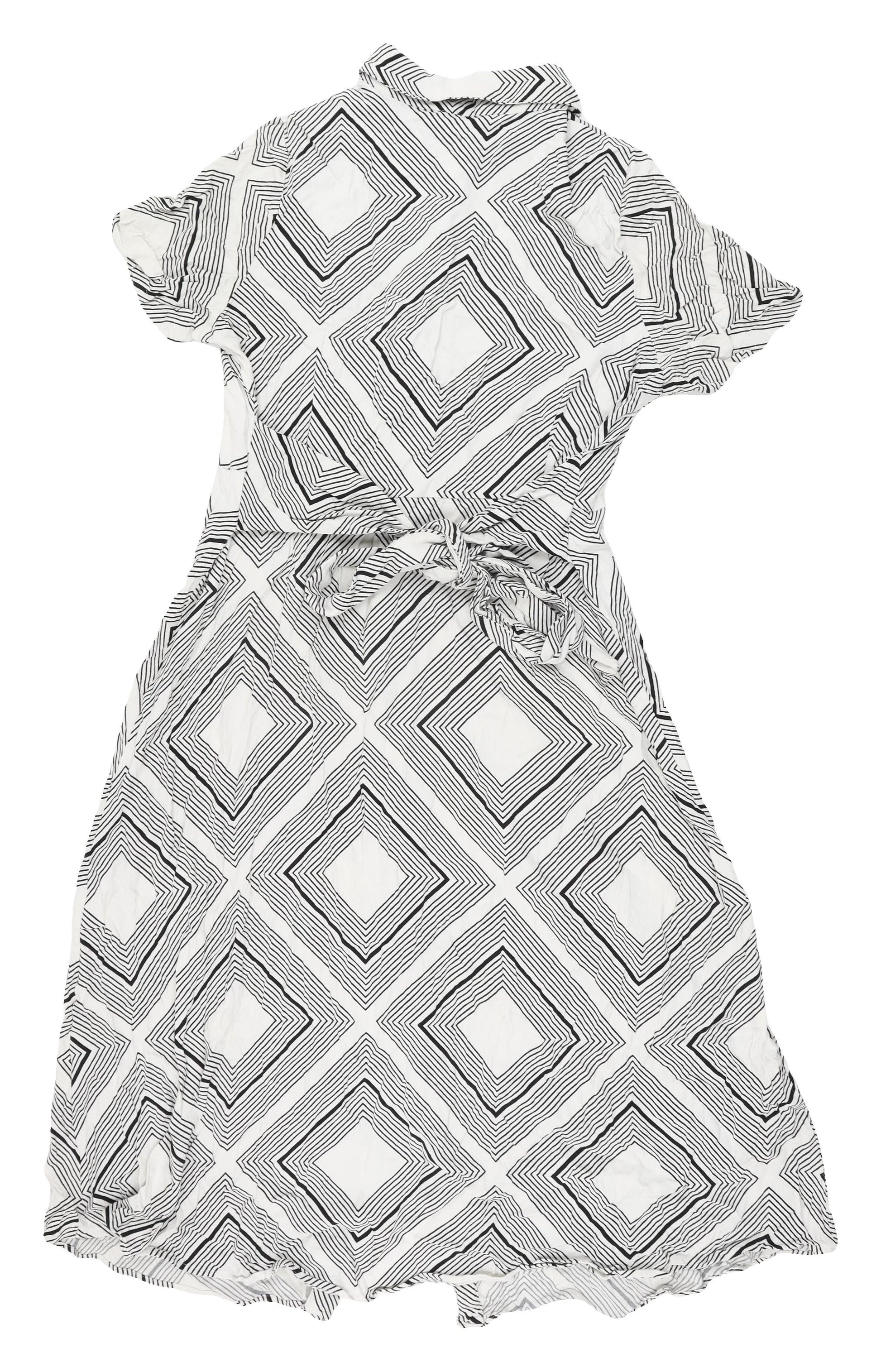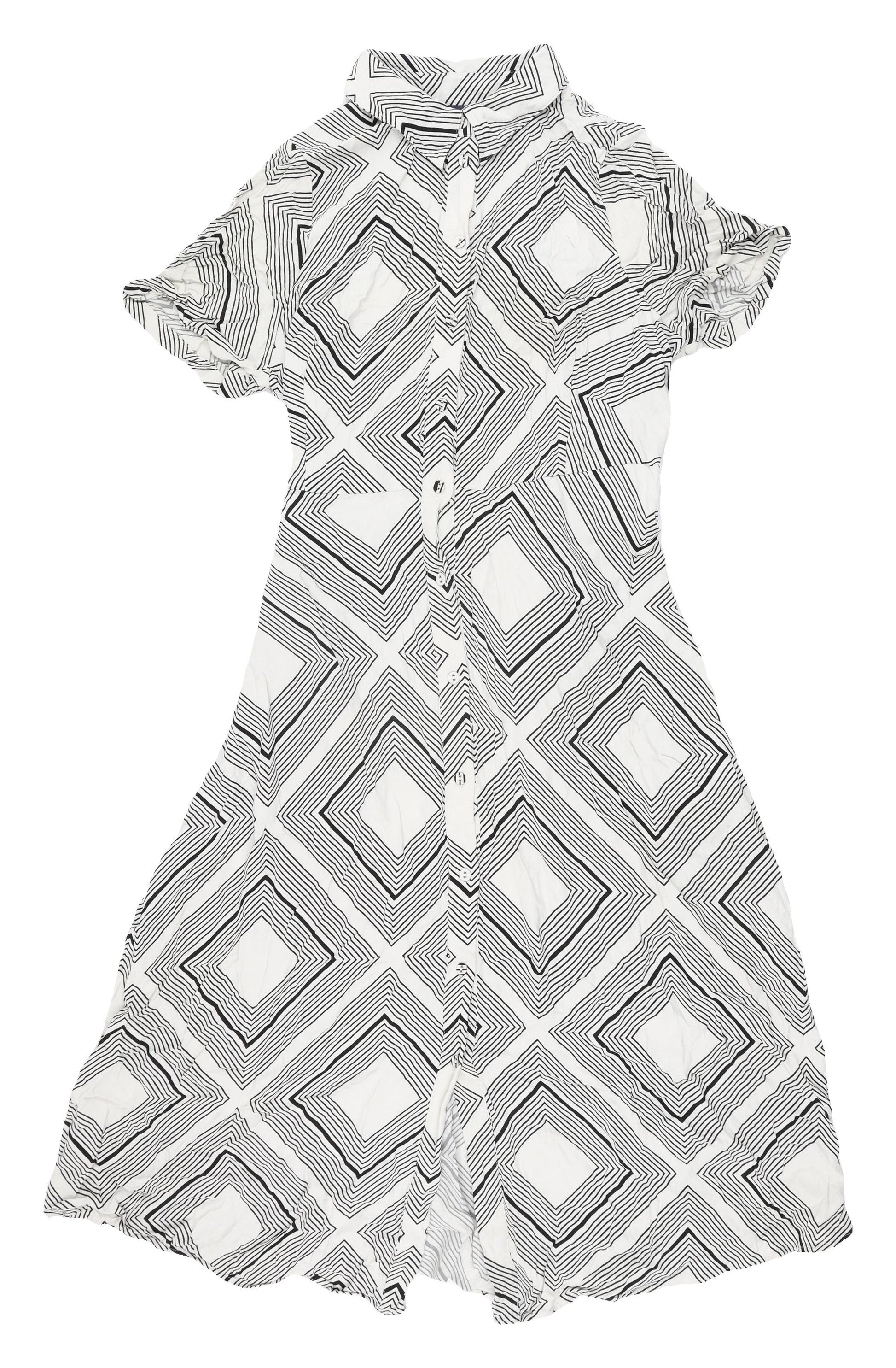 Add a touch of elegance to your wardrobe with this Marks and Spencer Women's Shirt Dress in a stunning ivory geometric design. Crafted from 100% viscose, this dress is a perfect blend of comfort and style, ideal for casual occasions. The collared neckline and short sleeves give it a classic silhouette, making it versatile for various outfits. The button closure adds a sophisticated accent, while the geometric pattern elevates the overall design, creating a modern twist on a timeless piece. Designed in a flattering size 18, this Regular fit complements your shape effortlessly, providing both comfort and modern appeal. Woven from high-quality fabric, the dress offers a lightweight feel, ensuring you stay cool and comfortable throughout the day. The easy-care, machine washable material makes it a practical choice for everyday wear. Whether you're heading to a brunch, a casual day out, or a picnic in the park, this dress offers style and convenience. A must-have for your collection, it promises to be a go-to favourite, adding a chic touch to your everyday ensembles. Don't miss the chance to own this fabulous piece and enjoy the compliments that follow.
