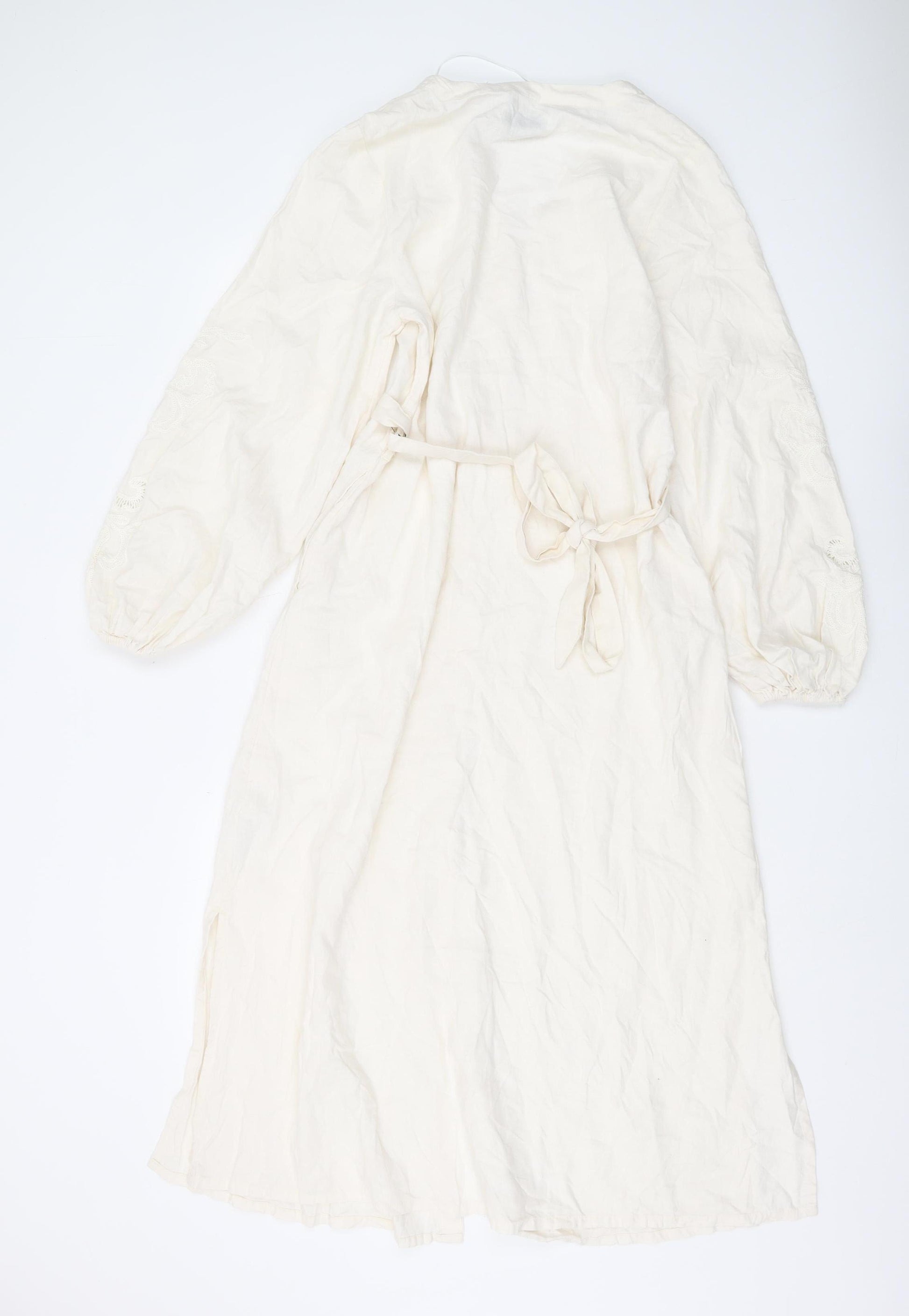 Discover elegance and comfort with this exquisite ivory shirt dress from Marks and Spencer. Beautifully crafted from a blend of flax and viscose, this dress combines a lightweight feel with sophisticated design. The belted waist adds a flattering silhouette, while the balloon sleeves introduce a touch of modern chic. Ideal for various occasions, its understated style makes it a versatile addition to any wardrobe. The button-front closure and V-neckline ensure a classic look, perfect for pairing with your favourite heels or sandals. Machine washable for easy care, this dress is designed to keep you looking stylish all day long. Whether worn for a casual outing or a day at work, its classic design will gracefully match any setting. Embrace timeless fashion with this essential piece, embodying Marks and Spencer's commitment to quality and style.