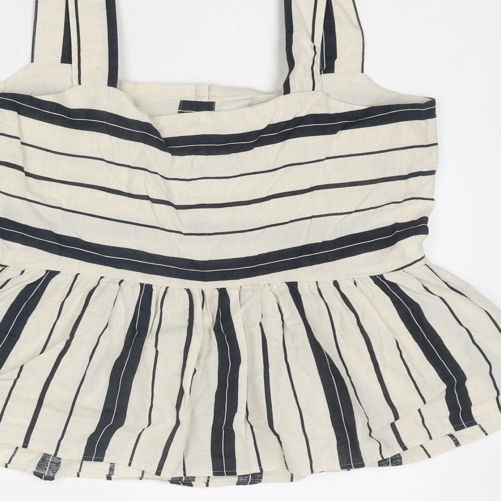 Womens Ivory Striped Cotton Basic Tank Size 12 Square Neck