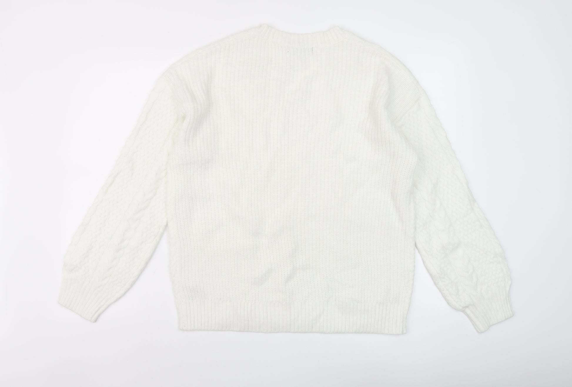 Womens Ivory V-Neck Polyester Pullover Jumper Size M