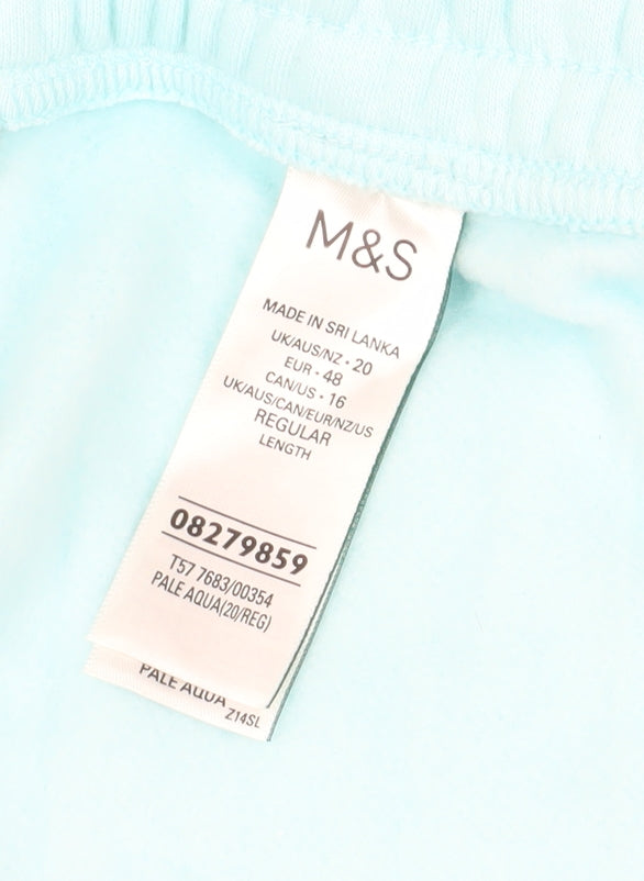 Discover ultimate comfort and style with these Marks and Spencer women's jogger trousers in a vibrant and refreshing blue hue. Crafted for the modern woman, these trousers are perfect for casual outings or relaxing at home. They are designed in a relaxed fit that provides ease and flexibility, making them a wardrobe essential. Made from a blend of 85% cotton and 15% polyester, these joggers promise a soft touch against the skin while ensuring durability and longevity. The drawstring closure keeps the look simple yet functional, allowing you to adjust the fit to your preference. Designed with an elastic waist, these trousers provide maximum comfort without compromising on style. Their no-pattern design makes them versatile and easy to pair with your favorite tops and blouses. Being machine washable, they offer the convenience of easy care, fitting perfectly into any busy lifestyle. These joggers, sized at 20 and part of the regular fit category, ensure a perfect fit for many and are ideal for casual wear occasions. Embrace the casual yet stylish look and make a statement wherever you go. Make these blue jogger trousers your go-to piece for any day of relaxation or leisure.