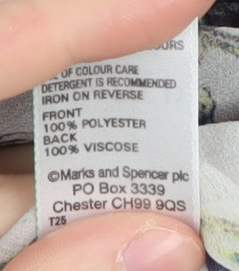 Discover the charming allure of this Marks and Spencer Women's Bird Print Top, a delightful addition to any casual wardrobe. Expertly crafted with a relaxed fit to ensure comfortable wear, this piece features a striking multicoloured bird pattern, infusing a touch of nature into your outfit. The top is designed with a round neckline, enhancing its understated elegance while providing versatility for pairing with various accessories or layering pieces. Made from a unique blend of 100% polyester on the front and 100% viscose on the back, it offers both durability and softness. Ideal for spring and summer, this top is perfect for casual outings and gatherings. The animal print theme adds an artistic flair that distinguishes this top from your regular staples, making it a playful yet sophisticated choice for relaxed occasions. Despite a faint mark on the front, it remains in very good condition, promising continued enjoyment. Machine washable for easy care, this top is a practical option for the modern woman. Purchase this stylish piece today and elevate your everyday style with a touch of personality and charm.