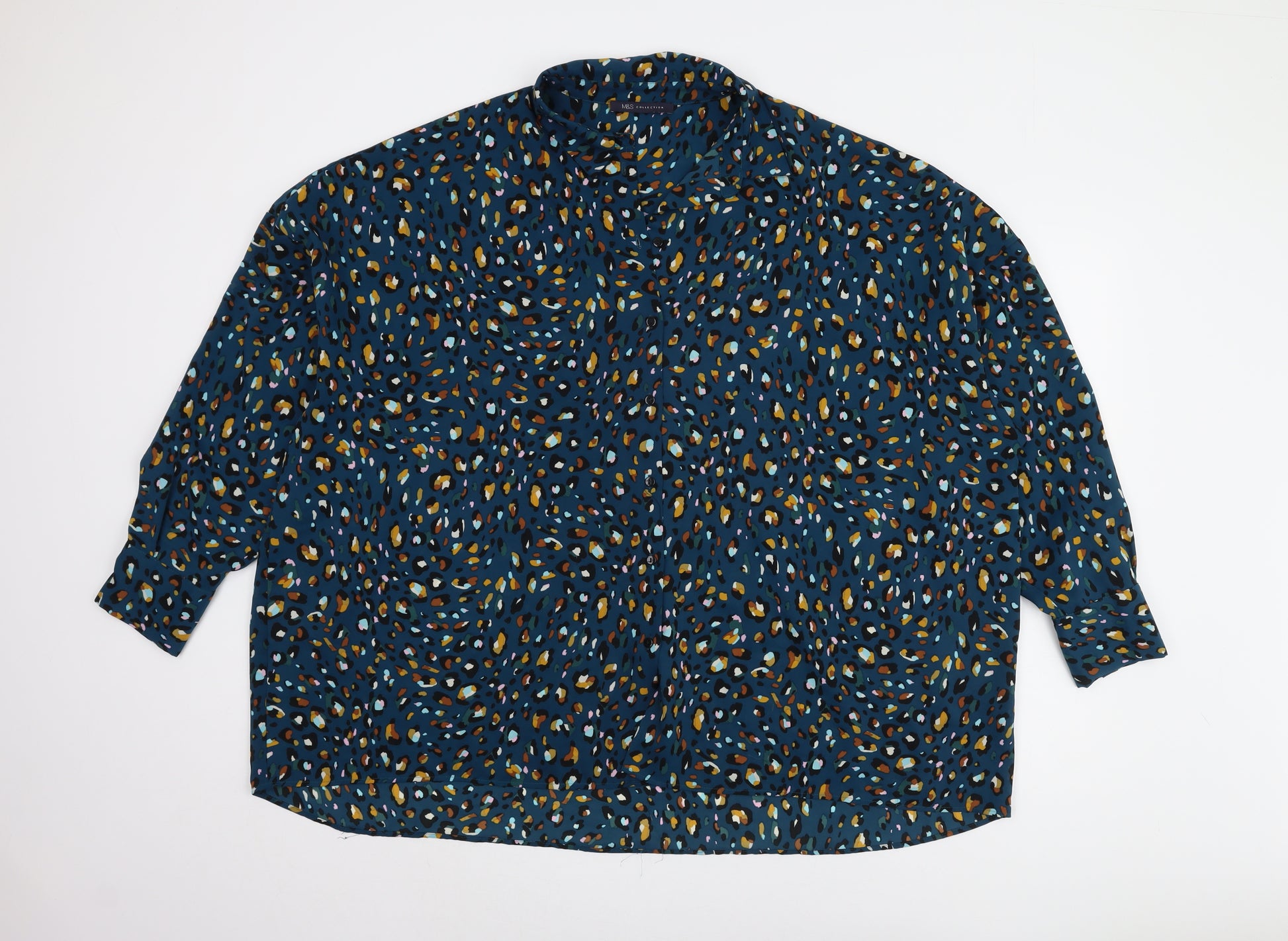 Enhance your wardrobe with this elegant Marks and Spencer blouse, perfect for any casual outing or a relaxed day at the office. Crafted to deliver both comfort and style, this women's blouse features an eye-catching multicoloured design with an animal print pattern, effortlessly adding a touch of modern sophistication to your ensemble. Made from 100% polyester, the fabric ensures a soft and lightweight feel, along with easy care that is ideal for the modern woman. The blouse is finished with a classic collar and long sleeves, striking the perfect balance between casual and chic. Designed in a relaxed fit, it offers comfort and versatility throughout the day. The secure button closure adds a timeless appeal while also offering convenience. Suitable for all seasons, this blouse is a stylish companion that pairs seamlessly with any ensemble. Whether you're going for a casual look with jeans or dressing it up with trousers, this piece is your go-to choice. Enjoy the quality and elegance of Marks and Spencer with this stunning new piece. With original tags still attached, it makes for an ideal wardrobe staple. Invest in timeless fashion with confidence and flair.