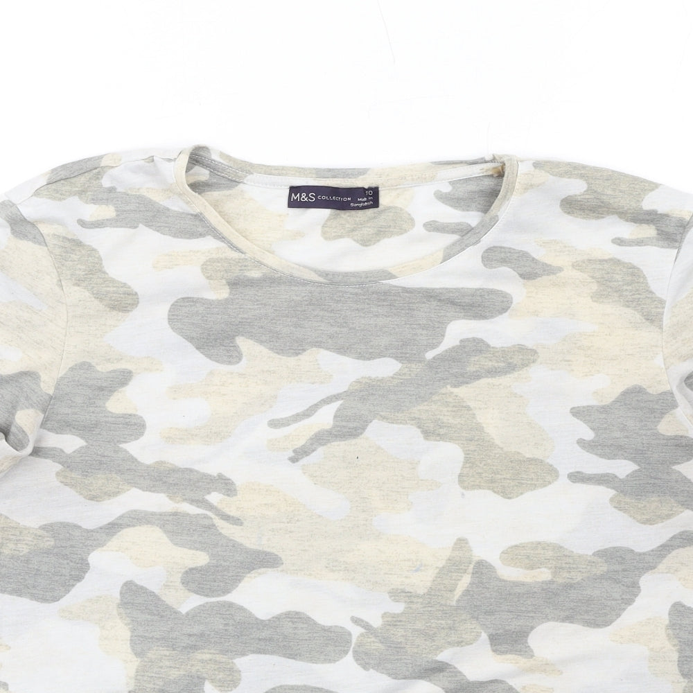 Womens Multicoloured Camouflage Polyester Basic T-Shirt Size 10 Crew Neck