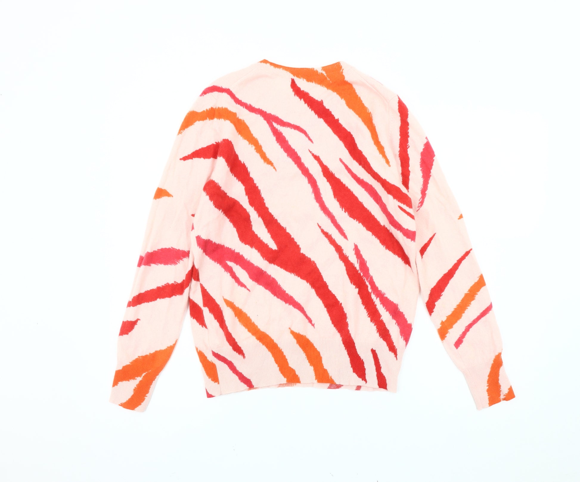 Elevate your winter wardrobe with this luxurious Marks and Spencer Women's Multicoloured Cashmere Jumper. Crafted meticulously from 100% cashmere, this pullover offers unparalleled softness and warmth, making it a perfect choice for the chilly autumn and winter months. The vibrant animal print pattern in eye-catching hues brings a bold and stylish touch to any outfit, ensuring you stand out with flair. Designed with a crew neck and long sleeves, this jumper offers a comfortable and regular fit, making it perfect for casual outings or cozy days at home. Its lightweight knit fabric ensures ease of movement while providing excellent insulation against the cold. Easy to care for, this cashmere jumper is machine washable, adding practicality to luxury. Whether paired with jeans for a laid-back look or layered over a blouse for a smart occasion, this versatile piece is sure to become a staple in your collection. New with tags and devoid of any defects, it promises quality and elegance to captivate any fashion enthusiast.