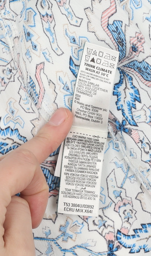 Regular price£4.25£425Regular priceUnit price / perSale price £4.25 GBPMarks and Spencer Womens Blue Geometric Viscose A-Line Size 14 V-Neck Pullover