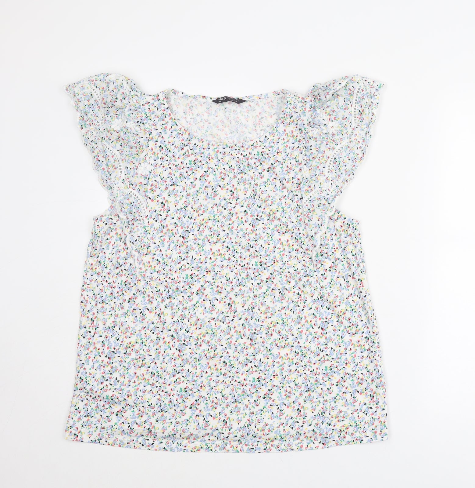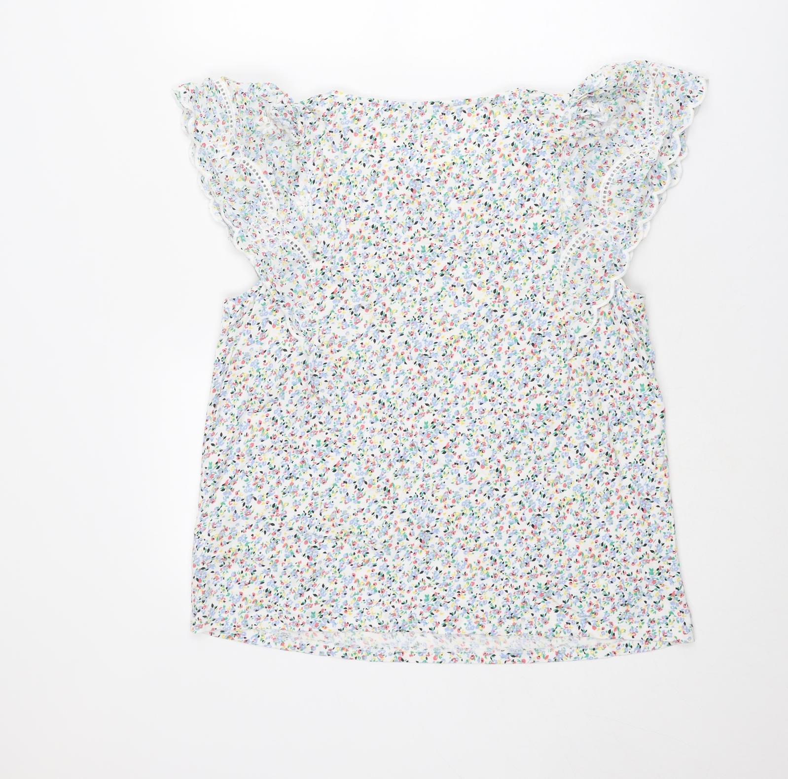 Womens Multicoloured Floral Cotton Basic Blouse Size 14 Round Neck