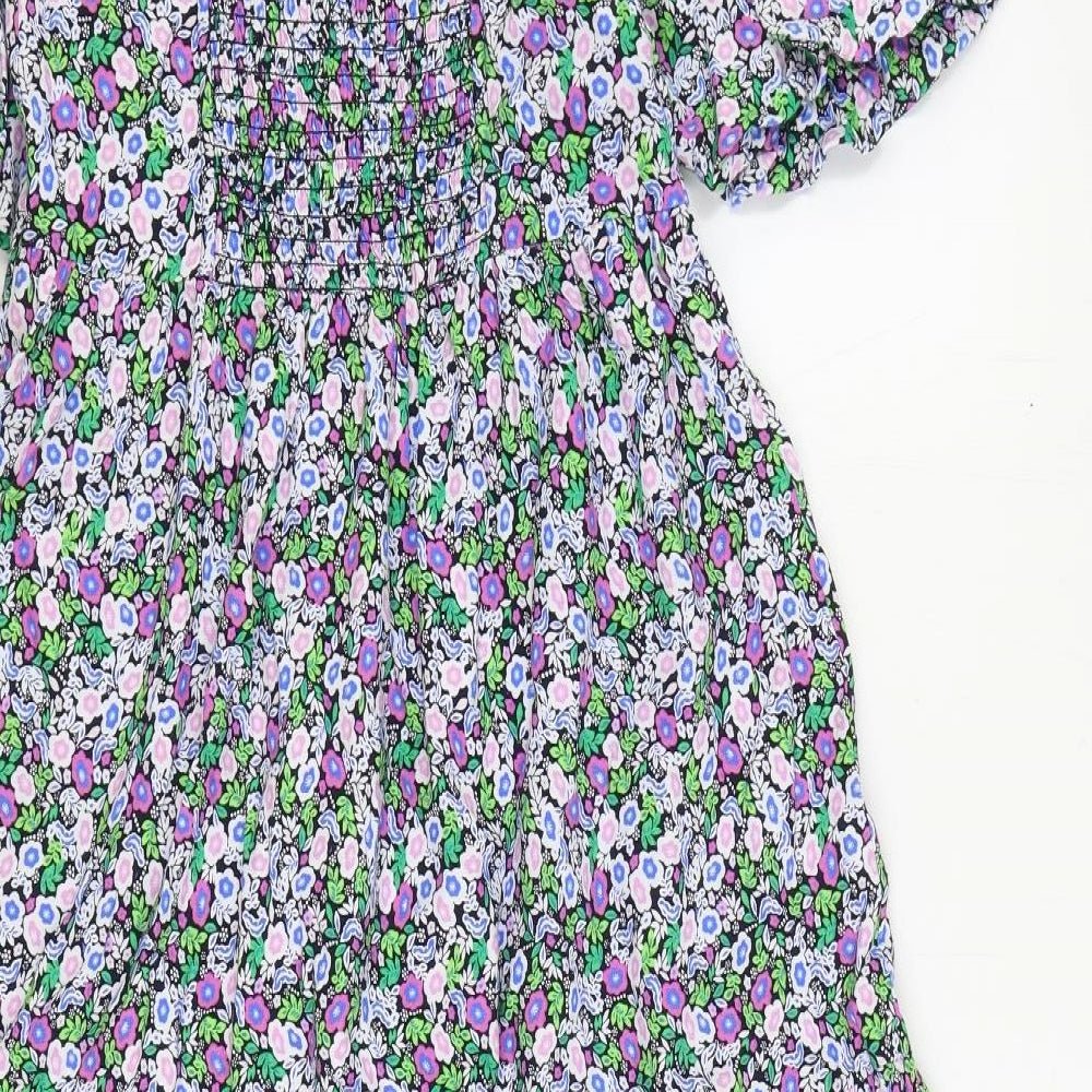 Womens Multicoloured Floral Cotton Fit & Flare Size 10 Square Neck Pullover