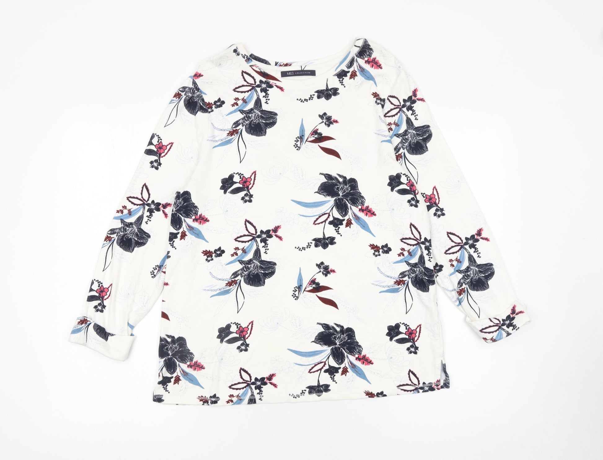Women's Multicoloured Floral Long Sleeve Jersey T-Shirt Size 14