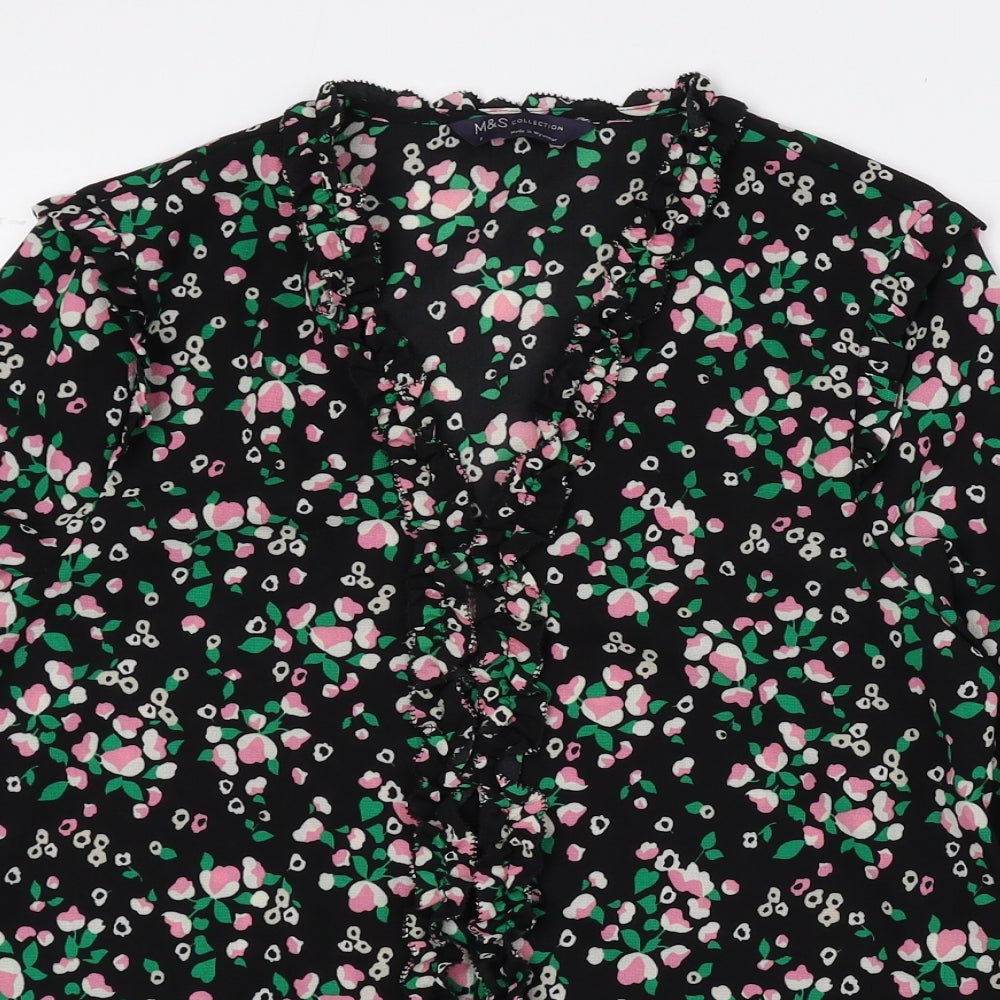 Womens Multicoloured Floral Polyester Basic Blouse Size 8 V-Neck
