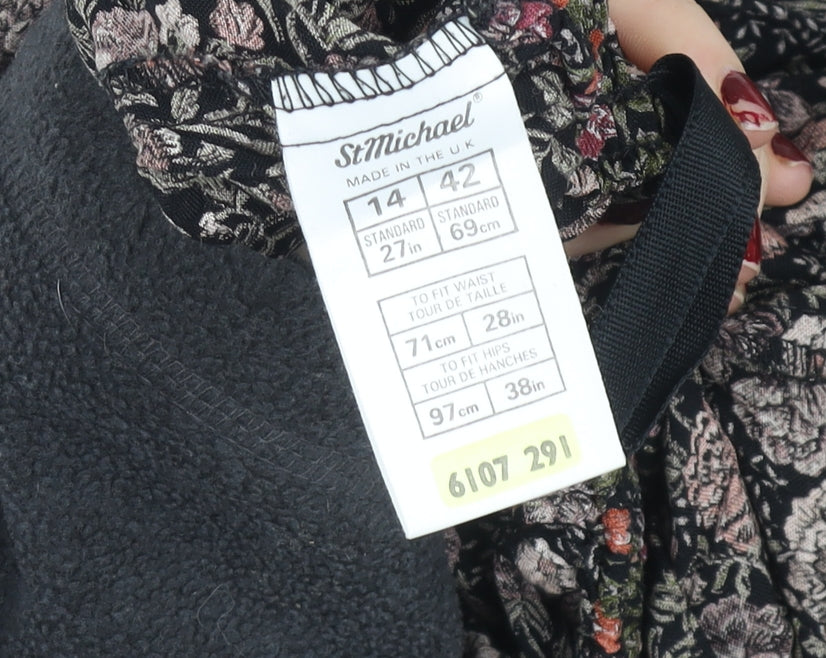 Step into effortless vintage-inspired style with this beautiful Marks and Spencer Women's A-Line skirt. Designed under the iconic St Michael label, this piece perfectly combines comfort and feminine elegance. Crafted in the UK from 100% viscose, the fabric is soft, breathable, and lightweight, making it ideal for warmer days while remaining versatile enough for all-season wear. The multicoloured floral pattern, set against a dark base, creates a charming yet timeless aesthetic that nods to classic British design. This skirt features a relaxed A-line silhouette that flatters a wide range of body shapes, offering graceful movement with every step. The elastic waistband enhances comfort and provides an easy, flexible fit around the mid-rise waist, suitable for casual daytime looks or more refined settings. The knee-length cut delivers just the right balance between formal and relaxed style, making it a wonderful choice to pair with blouses, knitwear, or even simple tees. The rich floral print incorporates warm tones of rose, green, and black, which complement both neutral and vibrant tops. Durability meets practicality, as the skirt is fully machine washable, ensuring maintenance is simple. Whether you’re heading to a casual lunch, exploring on a weekend, or dressing for a day at work, this piece combines comfort with timeless elegance. The purely viscose composition ensures a naturally soft drape and luxurious feel against the skin. In excellent condition with only minimal signs of gentle wear, it’s ready to add charm to any wardrobe. Ideal for spring, summer, and autumn, this vintage-inspired Marks and Spencer St Michael skirt will brighten your outfit rotation with its distinctly feminine pattern and flattering fit. A true classic that captures the effortless grace of a bygone era while remaining perfectly wearable for today’s woman.