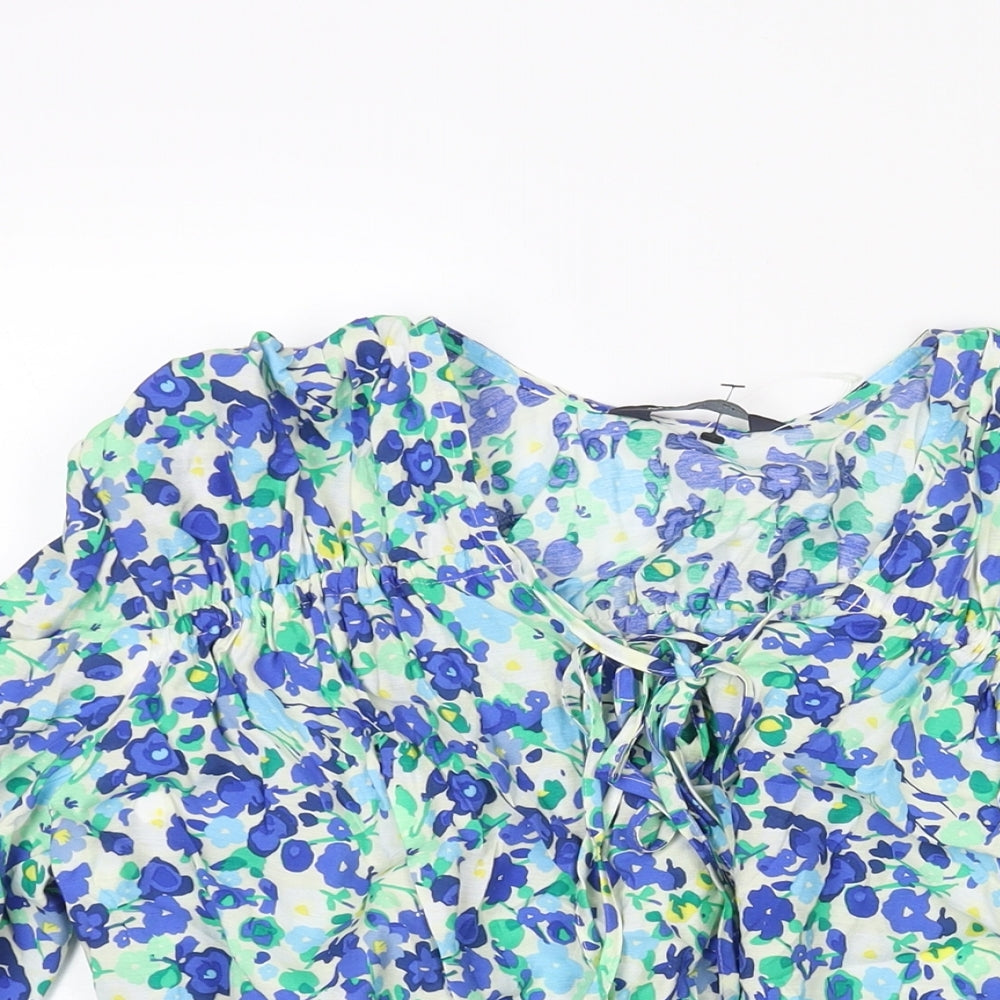 Womens Multicoloured Floral Viscose Basic Blouse Size 10 V-Neck