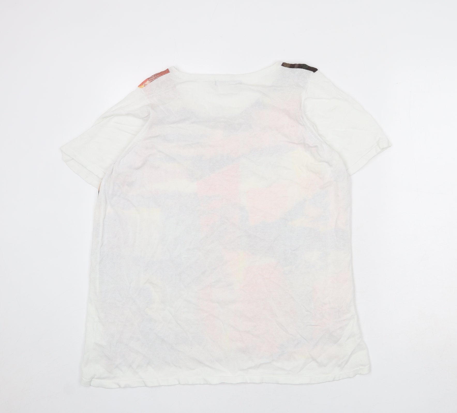 Womens Multicoloured Geometric Cotton Basic T-Shirt Size 16 Boat Neck