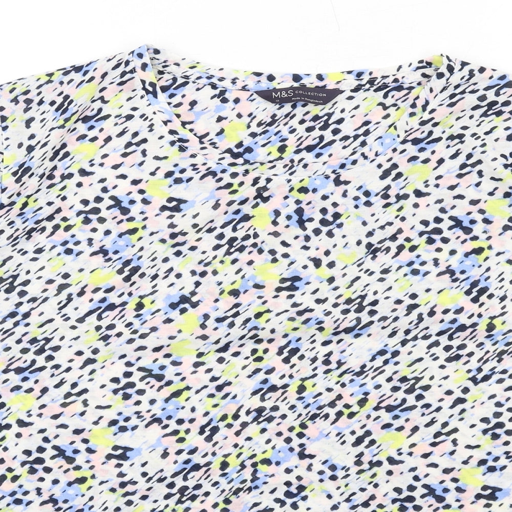 Womens Multicoloured Geometric Polyester Basic T-Shirt Size 12 Round Neck