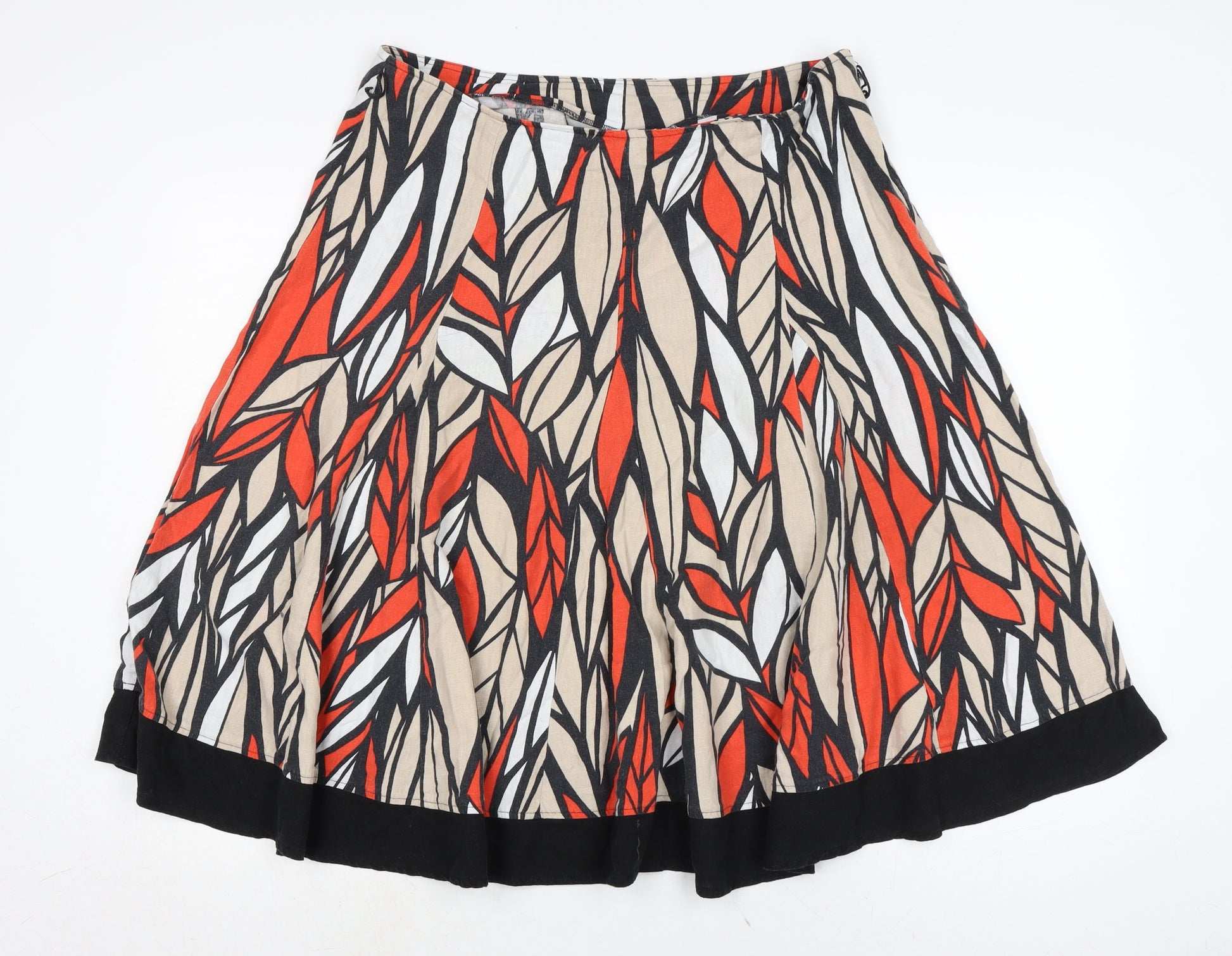 Womens Multicoloured Linen Flare Skirt Size 14 Regular Zip