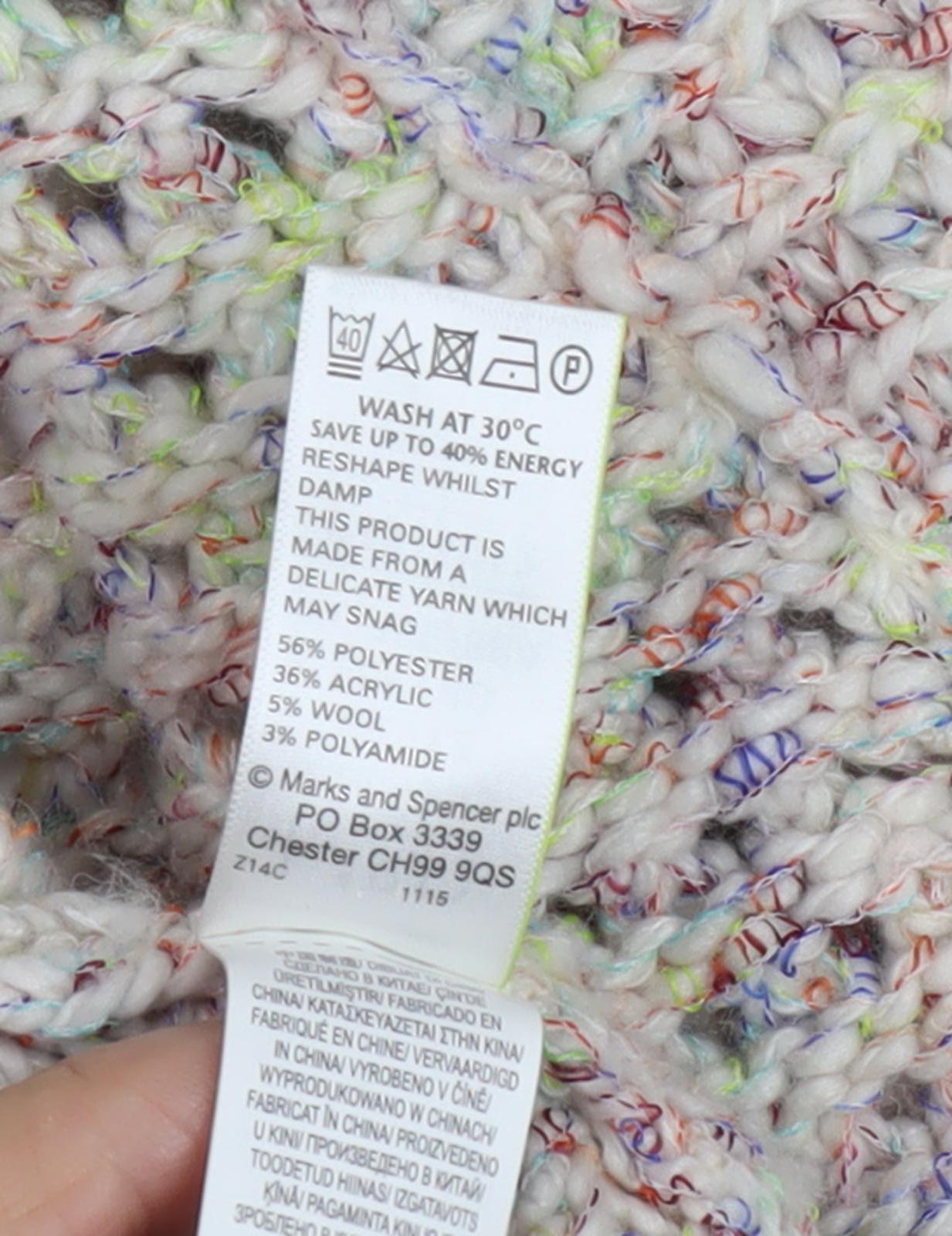 Elevate your cosy wardrobe with the Marks and Spencer Multicoloured Open-Knit Cardigan, a chic and stylish addition perfect for the colder months. Crafted with a unique blend of textures, this cardigan is both trendy and comfortable, ensuring you stay warm without compromising on style. The multicoloured open-knit design adds a touch of artistic flair, making it a versatile piece that complements a variety of outfits. Whether you're dressing up or down, this cardigan is sure to become a staple in your autumn and winter wardrobe. Ideal for casual occasions, its relaxed fit allows for effortless layering over your favourite tops. The long sleeves provide extra warmth, while the durable material blend of polyester, acrylic, wool, and polyamide promises longevity and easy machine care. Freshen up your seasonal style with this brand new piece from Marks and Spencer and make a fashionable impression effortlessly.