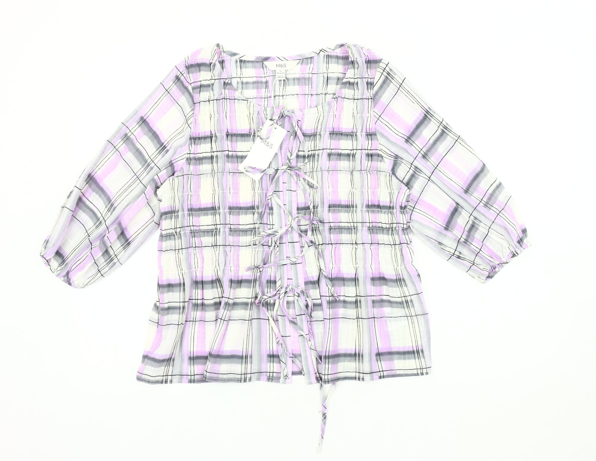 Experience effortless style with this Marks and Spencer Women's Blouse, perfect for adding a touch of modern elegance to your wardrobe. Crafted from high-quality polyester, this stunning piece is both stylish and comfortable, making it ideal for both casual and semi-formal occasions. The vibrant multicoloured palette features a delightful plaid pattern that adds a pop of colour to any outfit. With its flattering 3/4 sleeve design, this blouse can be paired with jeans or trousers, allowing versatility from day to night. Ideal for the warmer months of spring and summer, its breathable woven fabric ensures comfort while maintaining a chic silhouette. The impeccable new condition with original tags intact makes it a wonderful addition to your collection. Enhance your fashion ensemble with this wardrobe staple that effortlessly combines style and functionality. Elevate your look with this attractive blouse, suitable for women looking for a unique yet versatile piece. Order now and enjoy the quality and style synonymous with Marks and Spencer.
