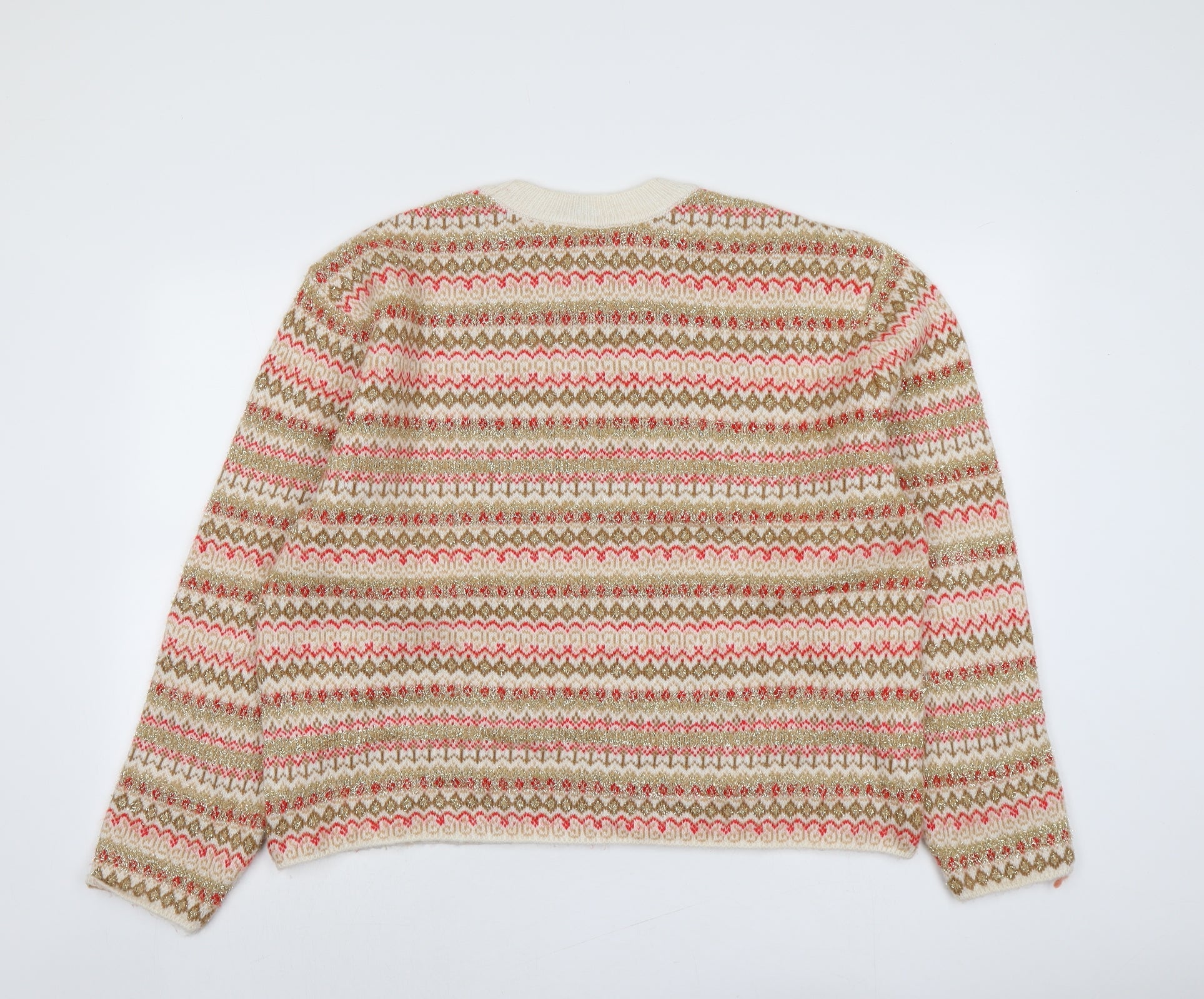 Womens Multicoloured Round Neck Geometric Acrylic Pullover Jumper Size L