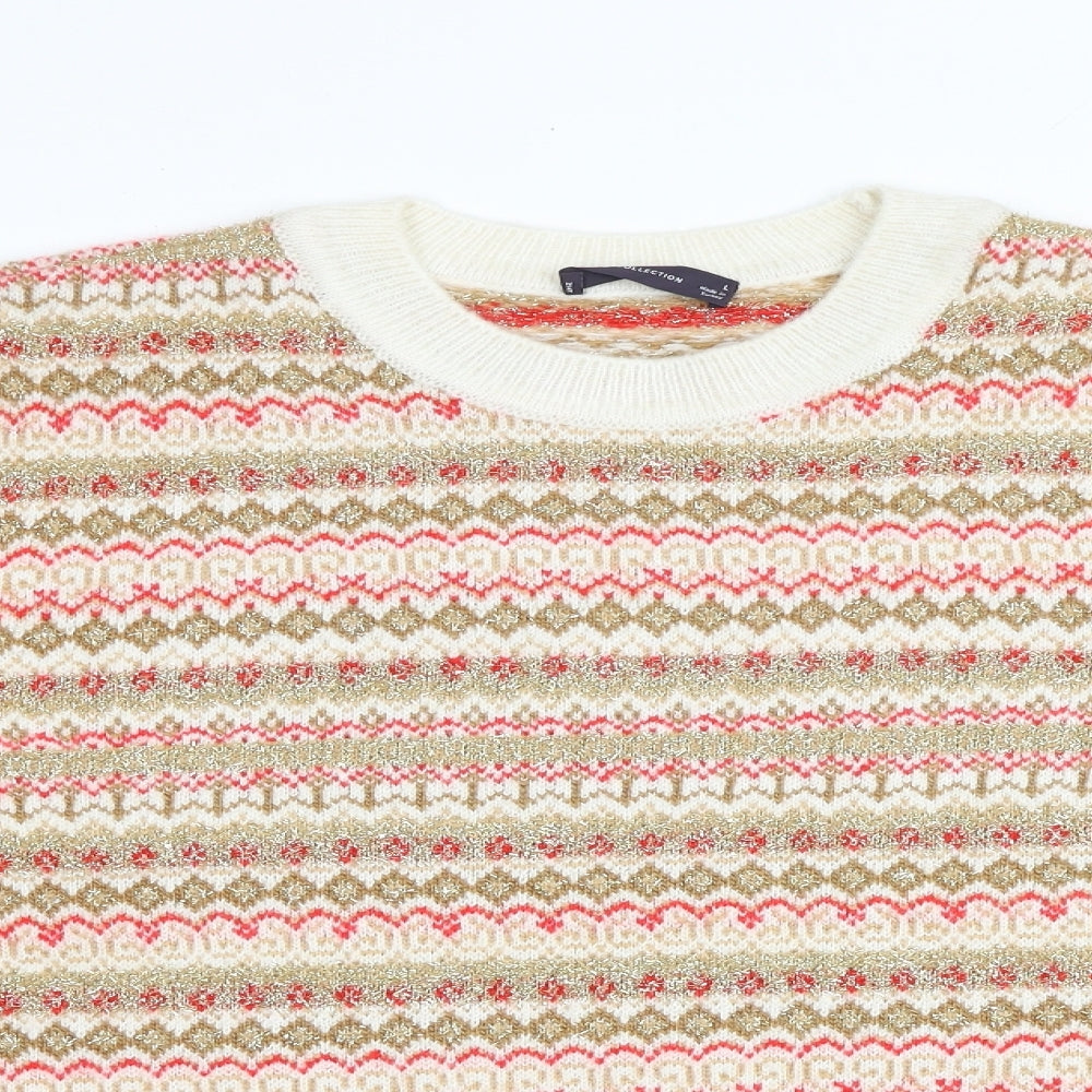 Womens Multicoloured Round Neck Geometric Acrylic Pullover Jumper Size L