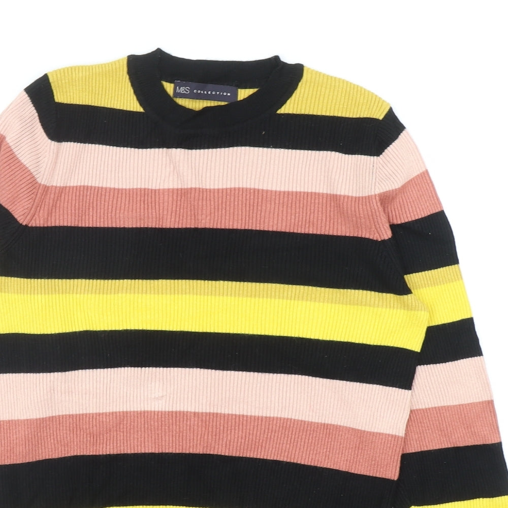 Womens Multicoloured Round Neck Striped Viscose Pullover Jumper Size 14