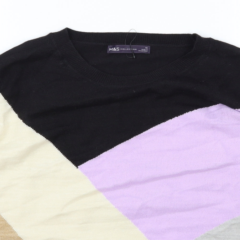 Womens Multicoloured Scoop Neck Acrylic Pullover Jumper Size 16 - Colourblock