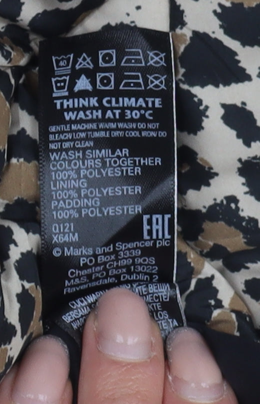 Embrace the wild side of your wardrobe with this stylish animal print puffer jacket from Marks and Spencer. Ideal for the colder months, the jacket is crafted for comfort and warmth with 100% polyester that ensures durability and ease of care. Designed for women, this mid-length outerwear is a perfect blend of fashion and functionality, featuring a full zip closure for convenience and secure pockets to keep your essentials in place. The jacket boasts a luxurious polyester lining coupled with polyester insulation, making it lightweight yet adequately insulated to shield you during autumn and winter adventures. The regular fit and regular size ensure a comfortable experience, suitable for layering over your favourite autumn ensembles. Its multicoloured animal print pattern adds a distinctive touch, making it a statement piece in any casual outing or travel wardrobe. Optimum for everyday wear, this puffer jacket is easy to maintain, being machine washable. Whether you're heading out for a brisk walk or a relaxed weekend outing, this jacket is crafted for those who cherish a blend of style and practicality. Dive into elegance and warmth this season with Marks and Spencer's beautiful animal-themed puffer jacket.
