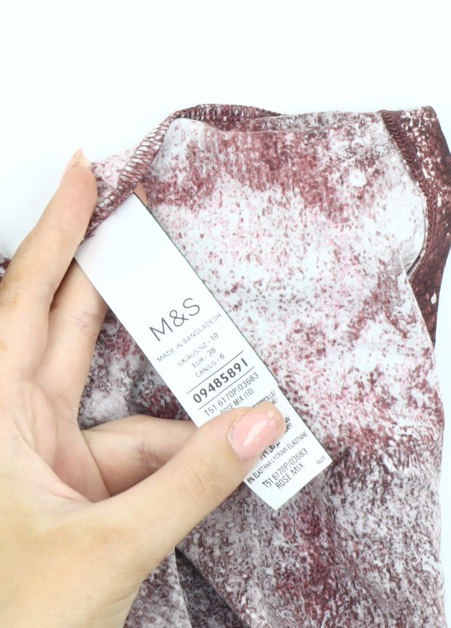 Elevate your wardrobe with this stunning multicoloured tank top from Marks and Spencer. Designed for women, it features a sleeveless cut and a comfortable round neckline. Crafted from a soft blend of cotton and elastane, the fabric is lightweight and breathable, perfect for transitioning through the seasons. Its unique abstract pattern makes it a standout piece for both casual and semi-formal occasions. Pair it effortlessly with jeans or skirts for a chic ensemble. This new item with tags offers superior quality, ensuring long-lasting wear. Add a pop of colour and style to your collection with this fabulous tank top.