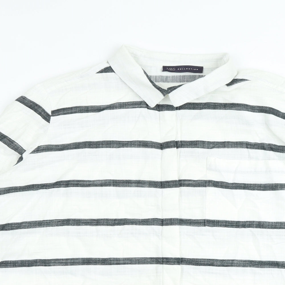 Womens Multicoloured Striped 100% Cotton Basic Button-Up Size 22 Collared