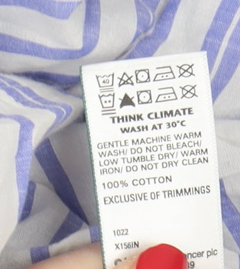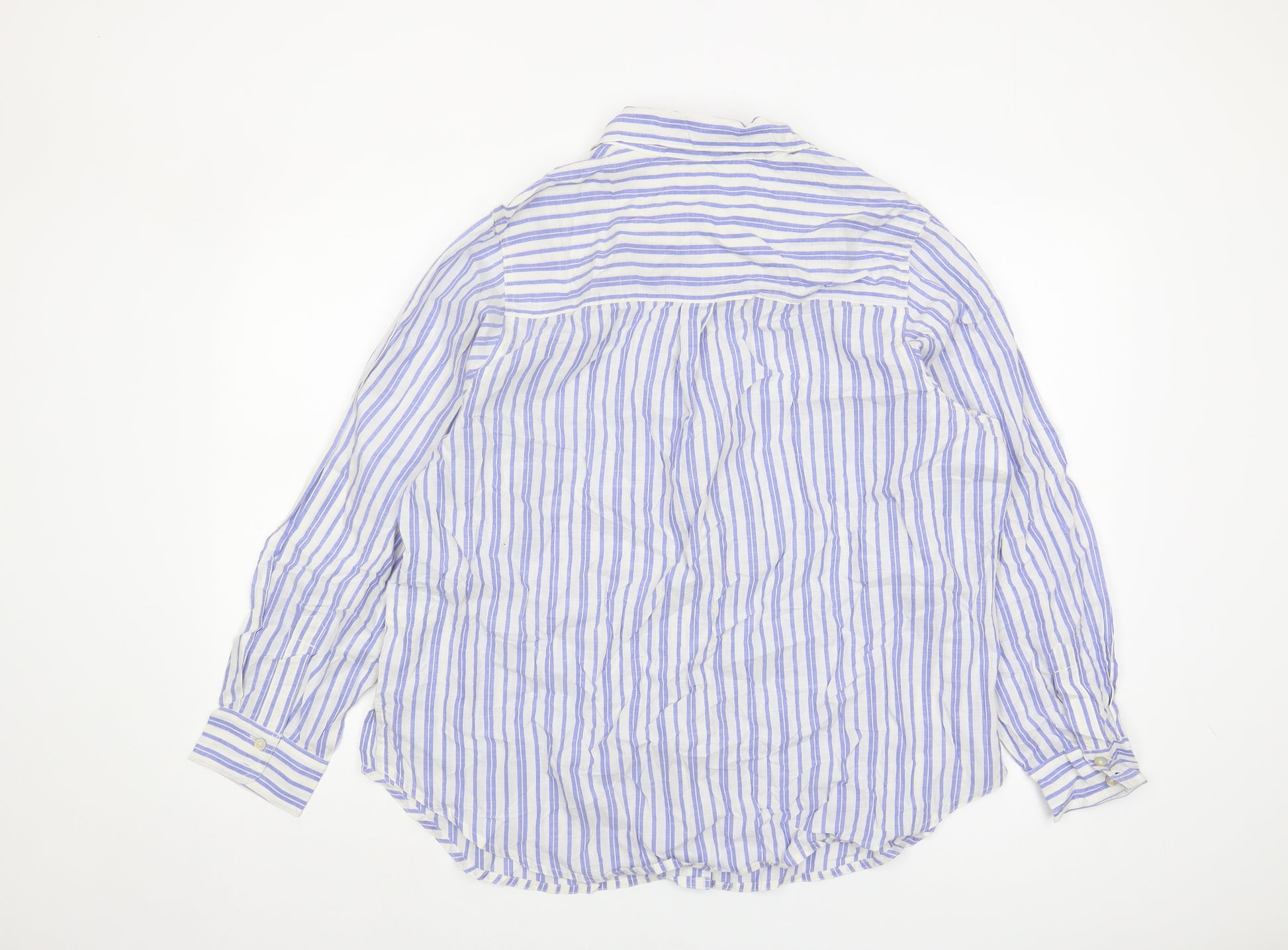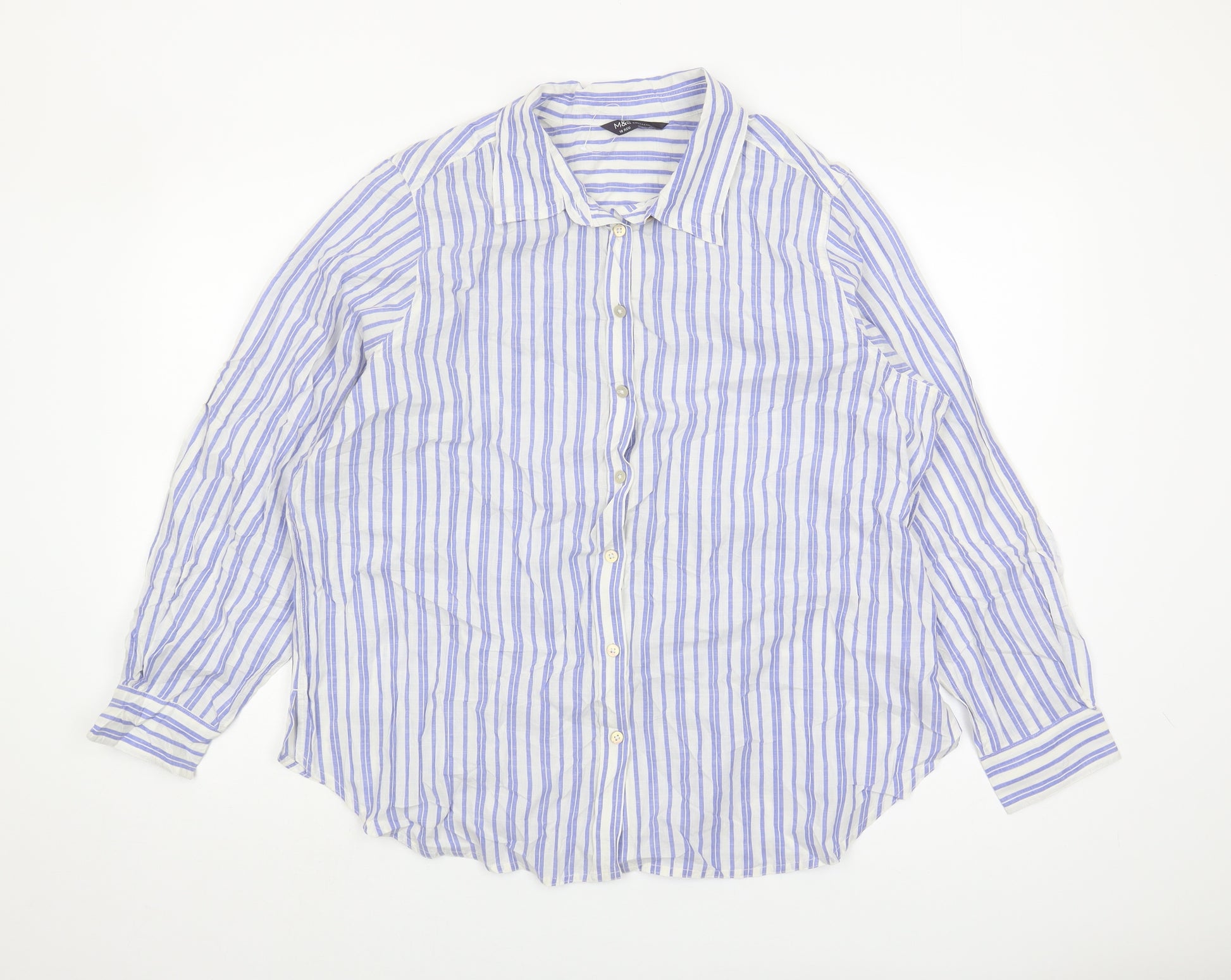 Elevate your casual wardrobe with this elegant Marks and Spencer Women's Button-Up Shirt. Crafted from 100% cotton, this shirt offers a comfortable and breathable feel, perfect for all seasons. The multicoloured striped pattern adds a vibrant touch, making it a versatile addition to any outfit. Ideal for casual occasions, this piece features a collared neckline and classic long sleeves, ensuring a timeless and relaxed look. Designed for a regular fit, this top is both flattering and easy to wear. With machine washable care, maintaining this stylish piece is simple and convenient. The button closure adds a traditional touch, complementing its overall aesthetic. Available in size 18, it caters to regular size types and is perfect for women looking for a chic yet comfortable option. Add a touch of refined casual style to your collection with this button-up shirt.