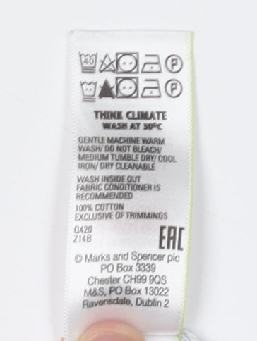 This vibrant multicoloured jumper from Marks and Spencer is a delightful addition to any wardrobe. Crafted from 100% cotton, it offers comfort and breathability, making it ideal for all seasons. The crew neckline design provides a classic look, pairing beautifully with the colourful striped pattern that adds a touch of playful elegance to your outfit. Designed for women, this regular fit, long sleeve pullover is both stylish and practical. Its machine washable feature ensures easy care and maintenance. Whether you're dressing up for a casual day out or looking for a cheerful pop of colour, this jumper will not disappoint. Despite a small burn mark on the sleeve, it remains in good condition, ready to accompany you on new adventures. This jumper is perfect for casual occasions and pairs wonderfully with jeans or a skirt. Elevate your style effortlessly with the charm and quality of Marks and Spencer.