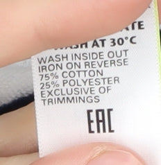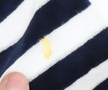This lovely Marks and Spencer striped pullover is a fantastic addition to any wardrobe, providing a chic and casual look with its multicoloured design. In a classic size 14, this jumper is crafted from a comfortable blend of 75% cotton and 25% polyester, ensuring both breathability and durability. The boat neck design adds a touch of elegance, while the long sleeves make it perfect for wearing across all seasons. Made for the modern woman, this jersey fabric jumper is ideal for casual outings or day-to-day wear, offering both style and comfort. Despite having a small stain on the front, it's still in very good condition, making it a great choice at this price point. This versatile piece is perfect for layering under a jacket or wearing on its own, and can easily transition from a day at work to a relaxed evening out. Its machine washable nature ensures easy care, making it a practical choice for busy lifestyles. Don't miss out on this stylish and affordable addition to your wardrobe.