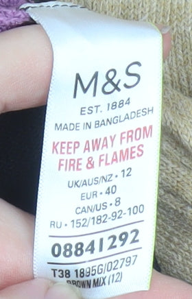 Add a splash of colour and comfort to your wardrobe with this beautifully soft Marks and Spencer women’s striped jumper in size 12. Designed in a flattering regular fit, this pullover features bold horizontal bands of tan, beige, lilac, and black, creating a contemporary colour block style that stands out for all the right reasons. Made from 100% acrylic knit, it provides a lightweight, warm and breathable feel ideal for layering through the changing seasons. The classic crew neckline and long sleeves make it a timeless choice for everyday wear, offering both comfort and versatility. Perfect for casual occasions or adding a touch of relaxed charm to your work ensembles, this knitwear piece pairs effortlessly with jeans, tailored trousers, or skirts. The fine tight-knit texture creates a smooth finish that feels premium while retaining durability and shape wash after wash. Machine washable for easy care, this jumper is designed with Marks and Spencer quality and sustainability in mind, encouraging care at lower temperatures to reduce impact. Suitable for autumn, winter and spring alike, it transitions seamlessly from chilly mornings to cosy evenings. The overall condition is very good with only a minor pull near the hem that is hardly noticeable. If you are looking for a chic yet comfortable layer that combines simplicity with style, this jumper makes an excellent addition to your collection. Embrace the soft-touch acrylic fabric that feels gentle against the skin while providing warmth without heaviness. Whether you style it casually for a coffee outing or cleverly layer it under a coat for a polished look, this versatile piece is sure to become one of your most reached-for jumpers this season.