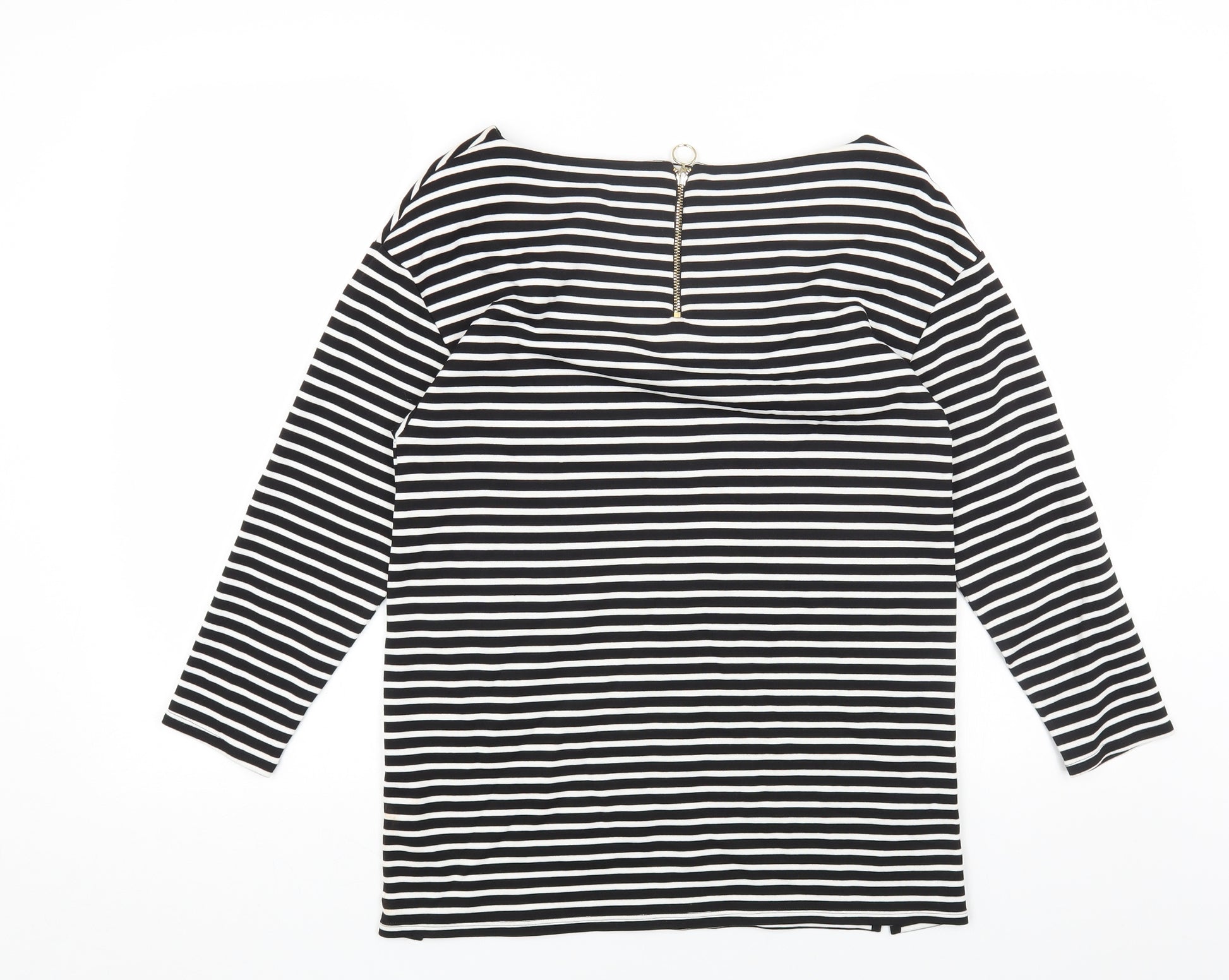 Marks and Spencer Women's Black & White Striped Long Sleeve Boat Neck Top Size 10