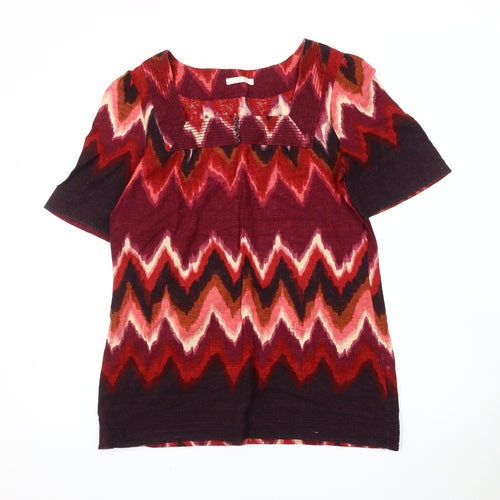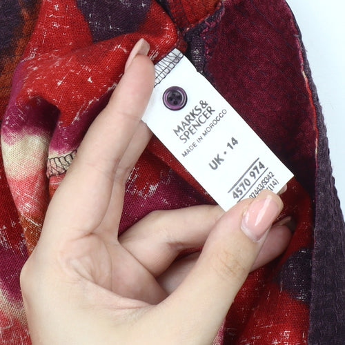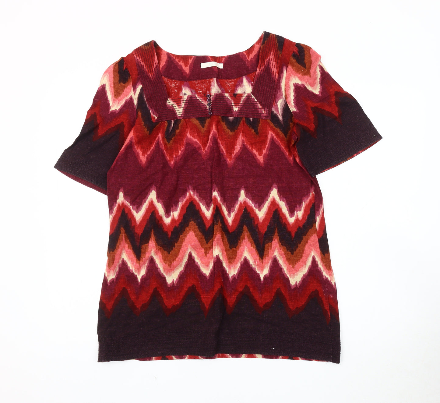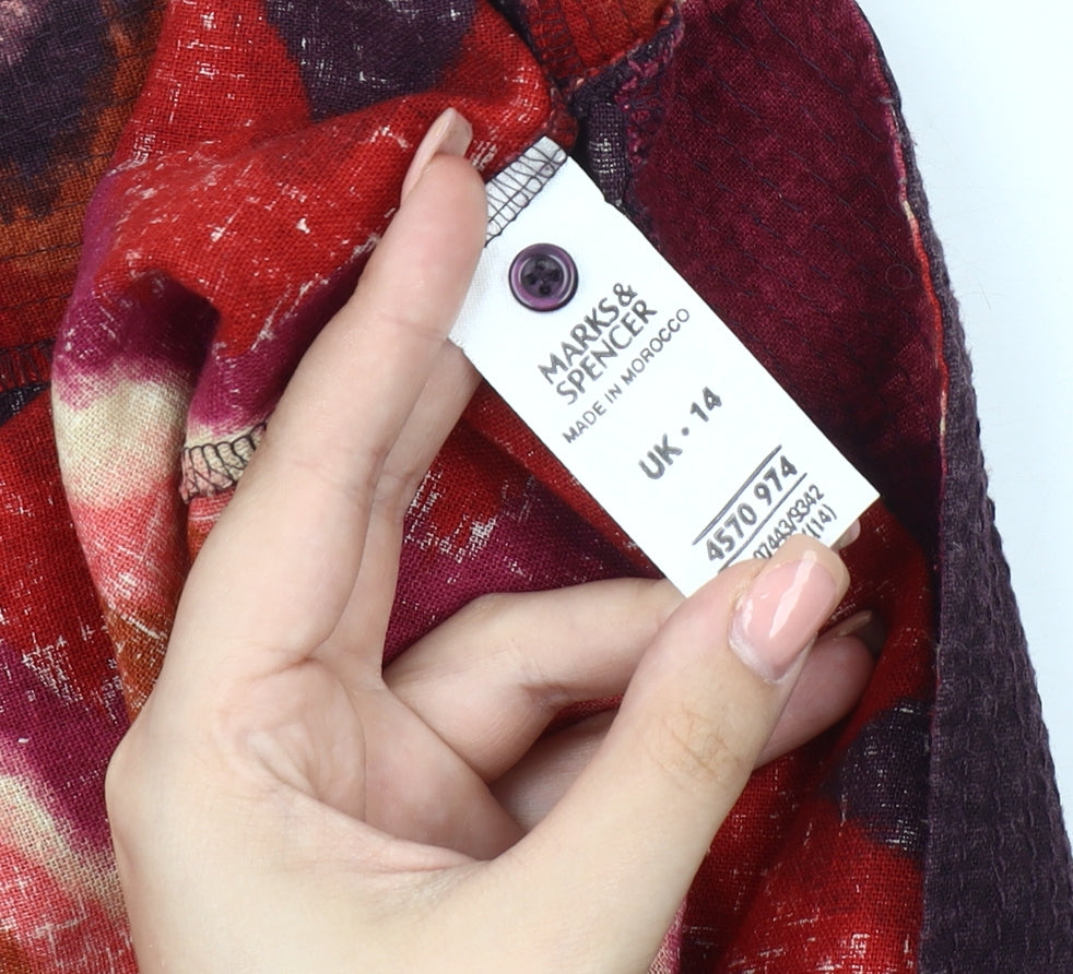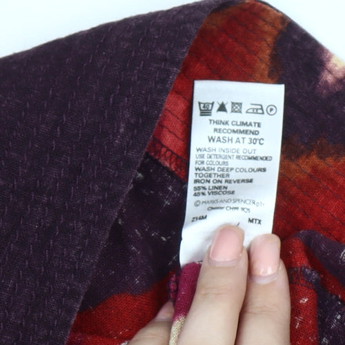 Elevate your wardrobe with this vibrant women's top from Marks and Spencer. Perfectly designed for a splash of colour, this multicoloured top features a bold geometric pattern that’s ideal for adding a fun and lively accent to your outfit. Tailored to fit a UK size 14, this piece promises comfort with its regular fit design, allowing you to wear it all day without compromising on style.Crafted from a breathable blend of 55% linen and 45% viscose, it offers a lightweight feel, making it a great choice for the warmer months or layering with other pieces in cooler weather. The simple yet sophisticated square neckline and short sleeves add an elegant touch to its overall look, making it suitable for various casual or relaxed occasions.This machine washable top ensures easy care, allowing you more time to enjoy wearing it and less time worrying about maintenance. Its excellent condition ensures that you receive a piece that looks almost new, ready to be paired with your favourite jeans, trousers, or skirts.Don’t miss the opportunity to own this excellent condition piece from Marks and Spencer, a brand renowned for its quality and timeless designs. Whether you're heading to a casual lunch or a weekend outing, this top will make a chic and comfortable addition to your outfit collection.