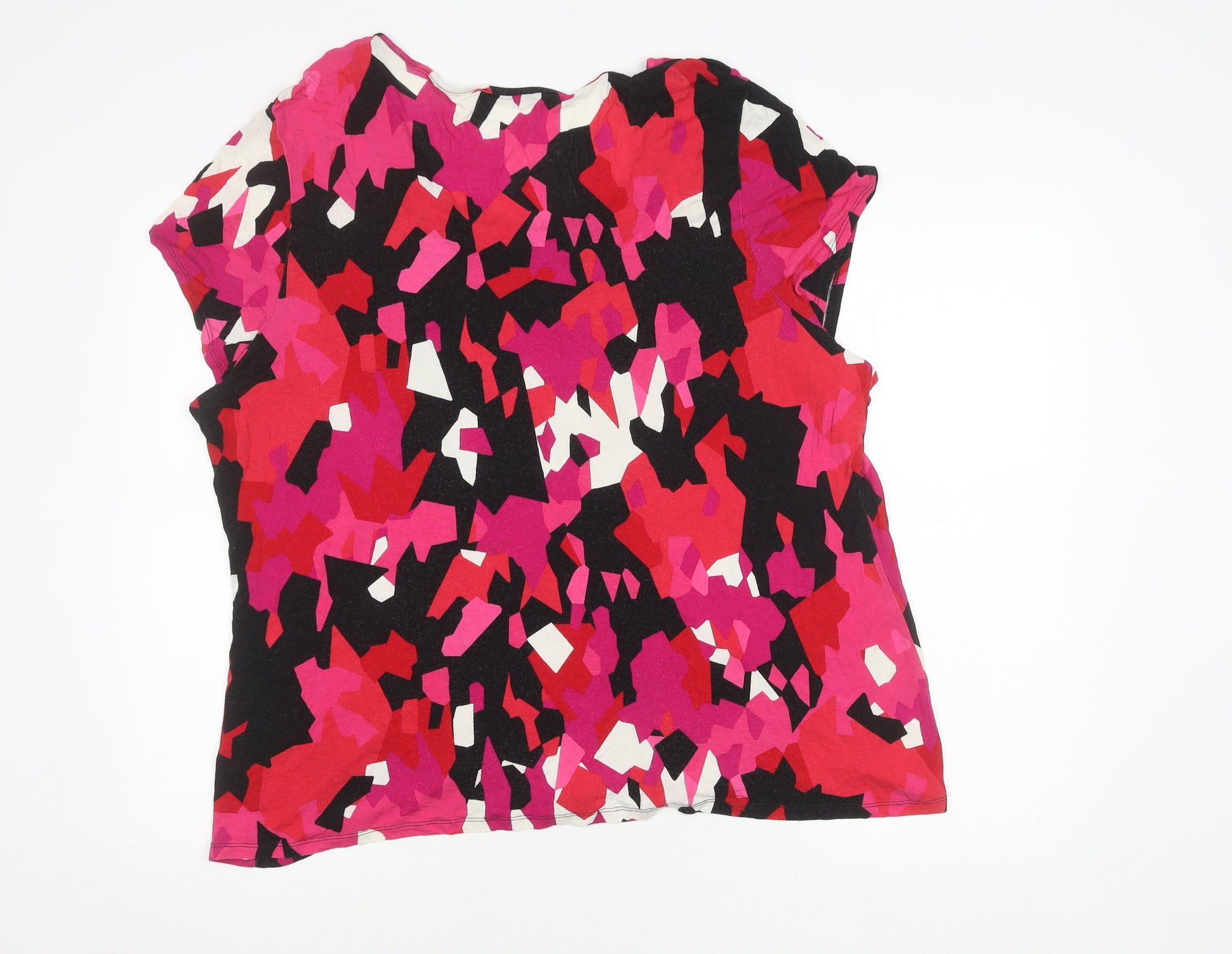 Add a splash of colour to your wardrobe with this vibrant top from Marks and Spencer, perfect for the modern woman looking for style and comfort. With its captivating multicoloured abstract pattern, this cap sleeve blouse is both a statement piece and a wardrobe staple. Created from a soft blend of 95% viscose and 5% elastane, the fabric ensures a flattering and comfortable fit, allowing for easy movement and all-day wear. Designed for a plus-size silhouette, it offers effortless elegance in size UK 24.