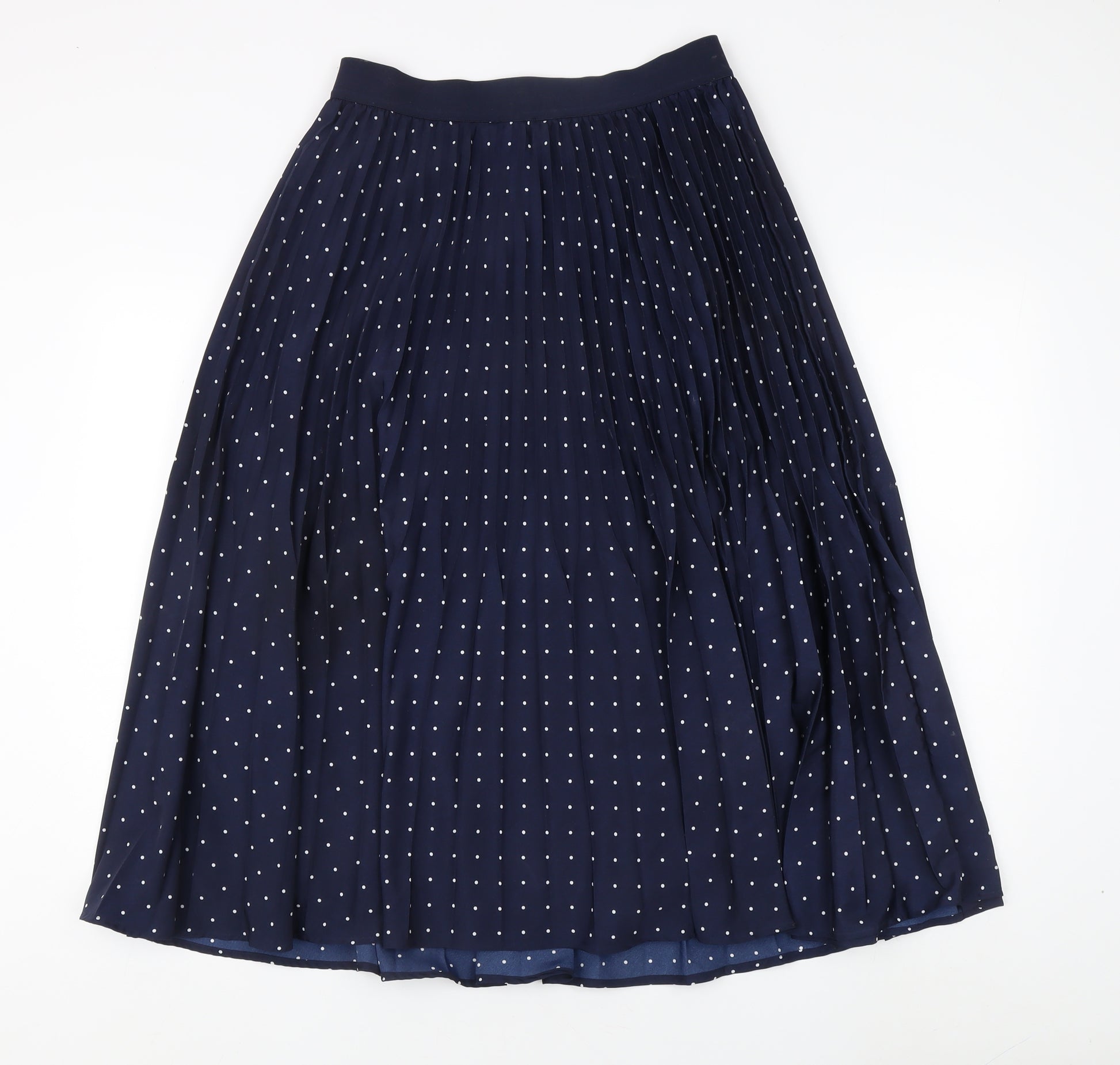 Women's Navy Polka Dot Pleated Midi Skirt Size 12